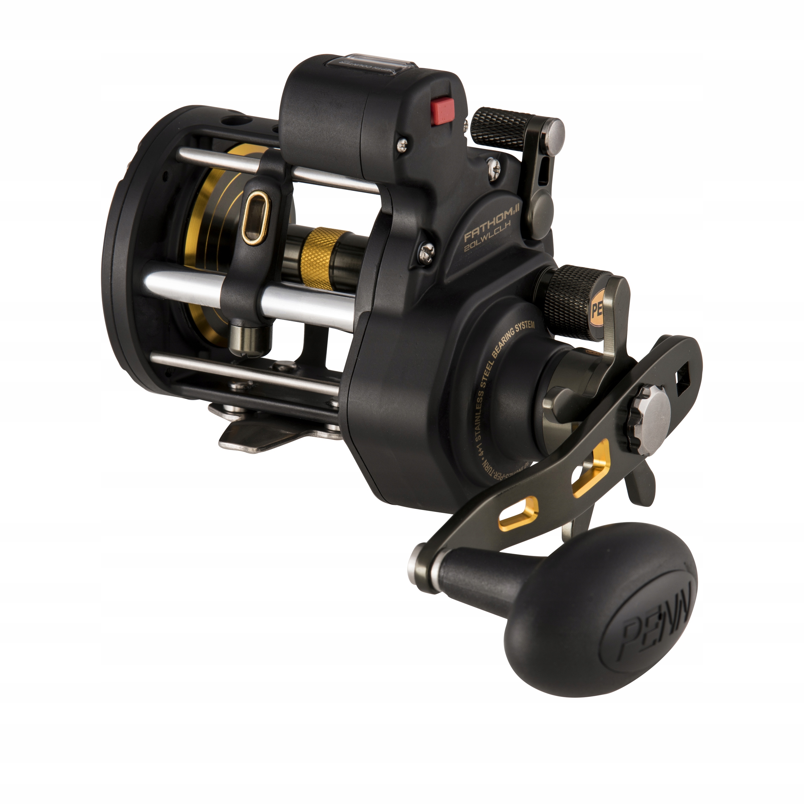 Мультиплікатор вітрового морського рівня PENN FATHOM II, розмір 20, з направляючою та лічильником для лівої руки