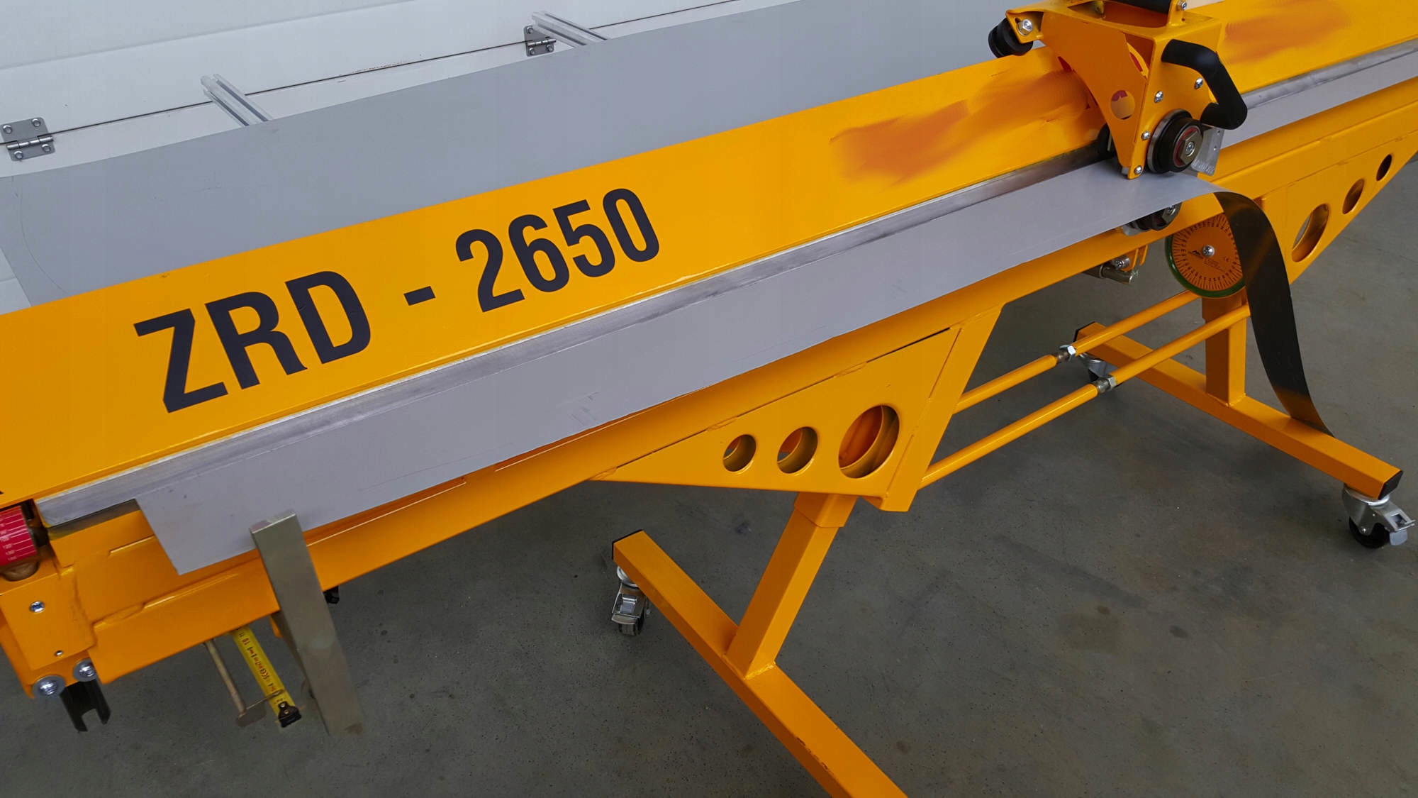 - Саутметр - (додаткове обладнання) - дозволяє згинати лоток для випічки під кожним кутом від 0 ° до 155 °. Вимірювальний диск дозволяє швидко встановити кут або згинати аркуш під будь -яким кутом під одним або декількома шматками без встановлення кутового бампера. [ Це дозволяє після попереднього визначення та блокування обмежувача кута в діапазоні 0-155 (180) градусів, що повторює згинання аркушів у серійному виробництві. 4 Повторюваність зігнутого кутів буде отримана за допомогою ручного розташування обмежувача кута. верхній промінь, підтримуючи його отвір. Промінь залишається в заданому положенні, а пружина запобігає падінню.