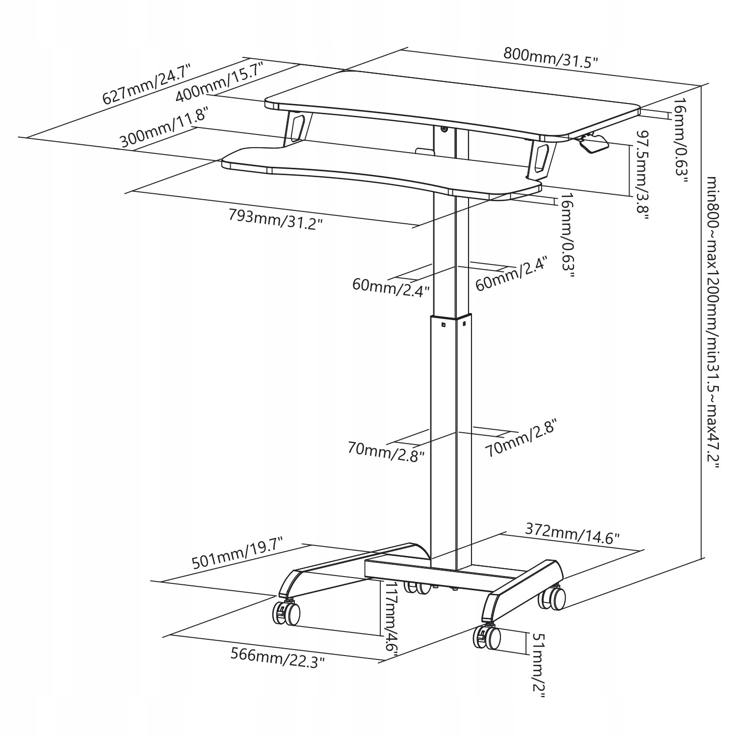 - Завдяки коригуванню висоти (від 80 до 120 см) стіл підходить як для стоячих, так і для сидіння