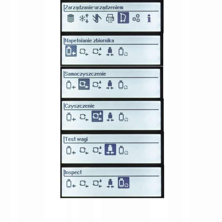 - перегляд "пробігу" машини, тобто кількість заправок бака, стан зносу факторного фільтра, кількість відновленого та заповненого фактора, час роботи вакуумного насоса