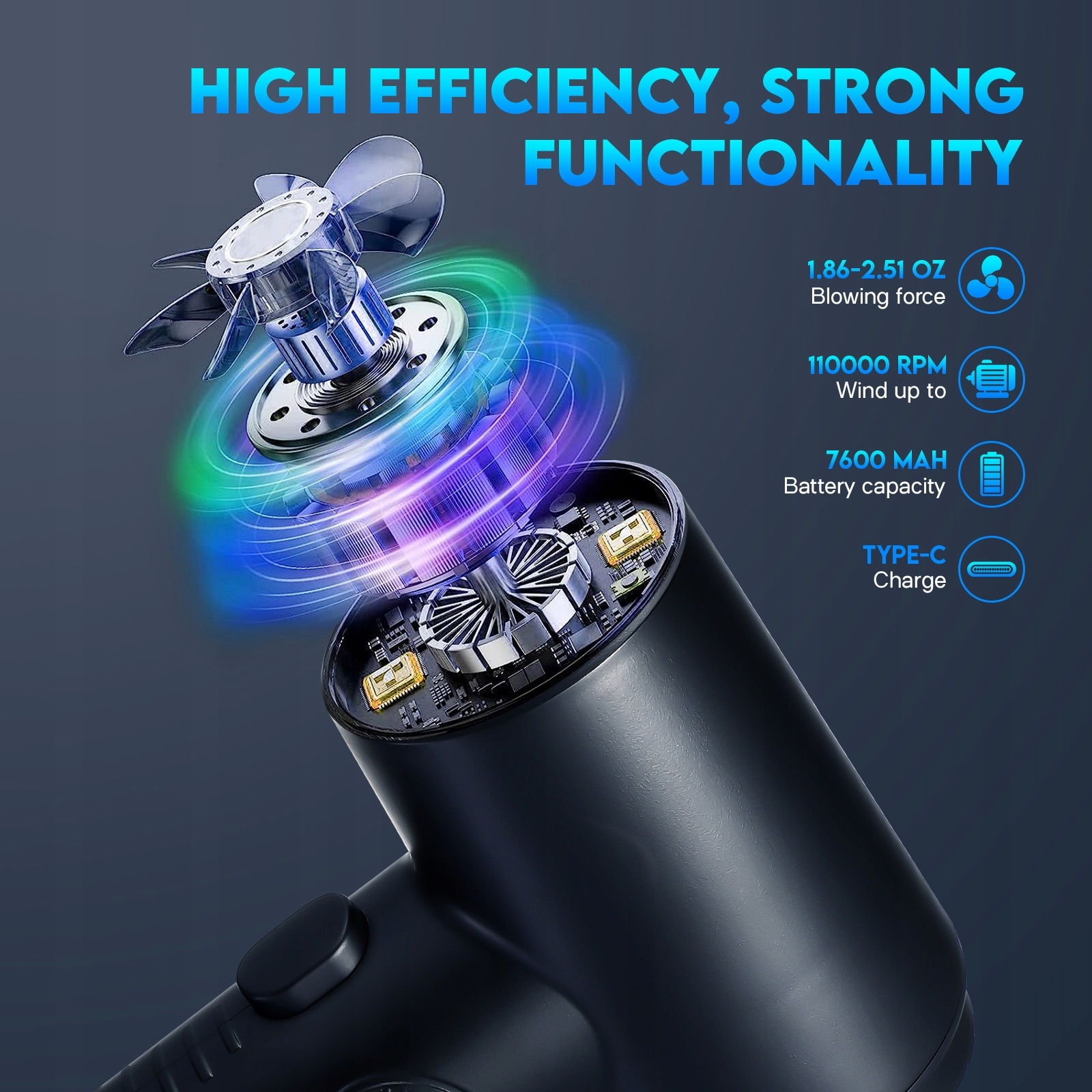 ⭐ СУПЕРПОТУЖНА БЕЗДРОТОВА ЕЛЕКТРИЧНА ПОДУВКА - БАГАТОФУНКЦІОНАЛЬНИЙ СТИСЛЕНЕ ПОВІТРЯ - КОМПРЕСОР ДЛЯ КОМП'ЮТЕРА / КЛАВІАТУРИ / ДОМУ / ОФІСУ / САДУ ⭐