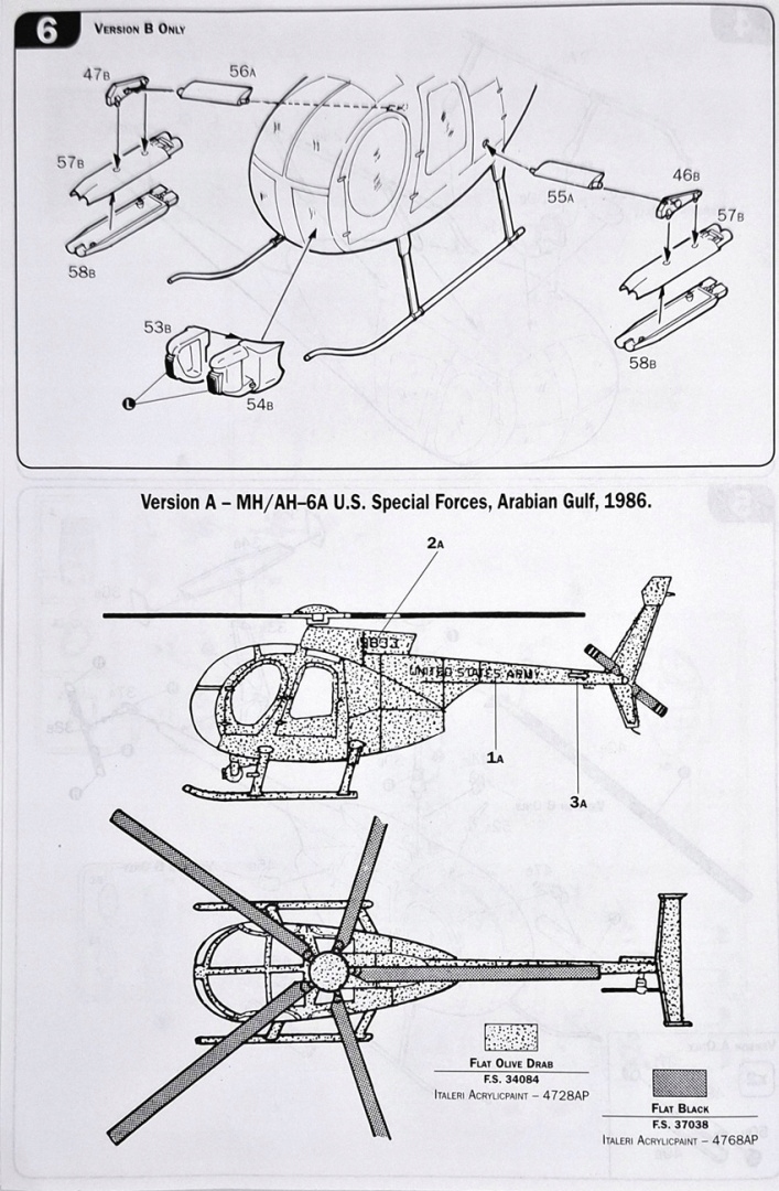 Модель американського вертольота AH-6 Night Fox + набір фарб, лаку, мийте