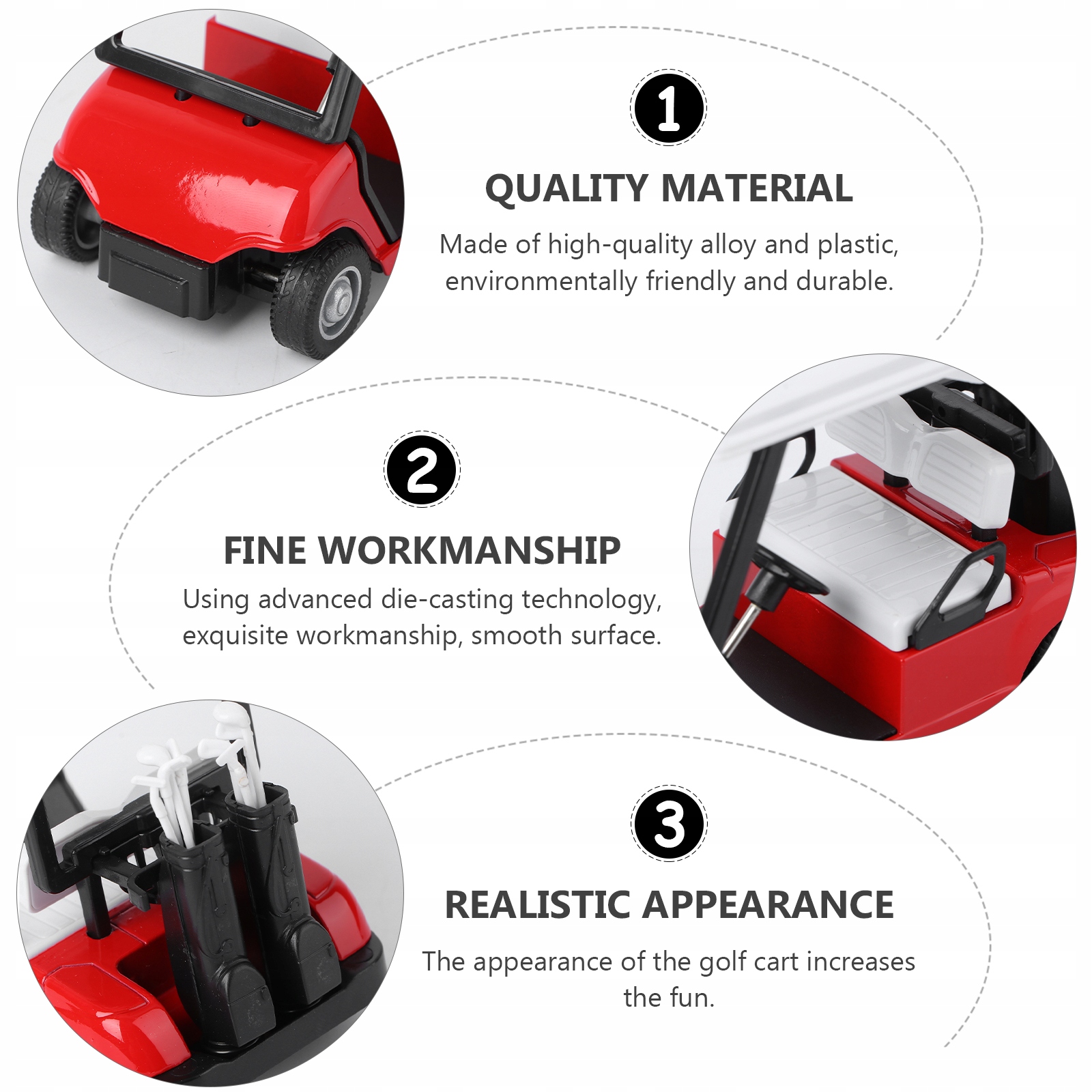 Модель візка для гольфу з алюмінієвого сплаву та пластикових деталей. Міні-модель автомобіля з реалістичними деталями розважатиме вашого малюка годинами. Чудово підходить для дитячого подарунка на день народження, веселих сувенірів для вечірки, колекції та прикраси дому.