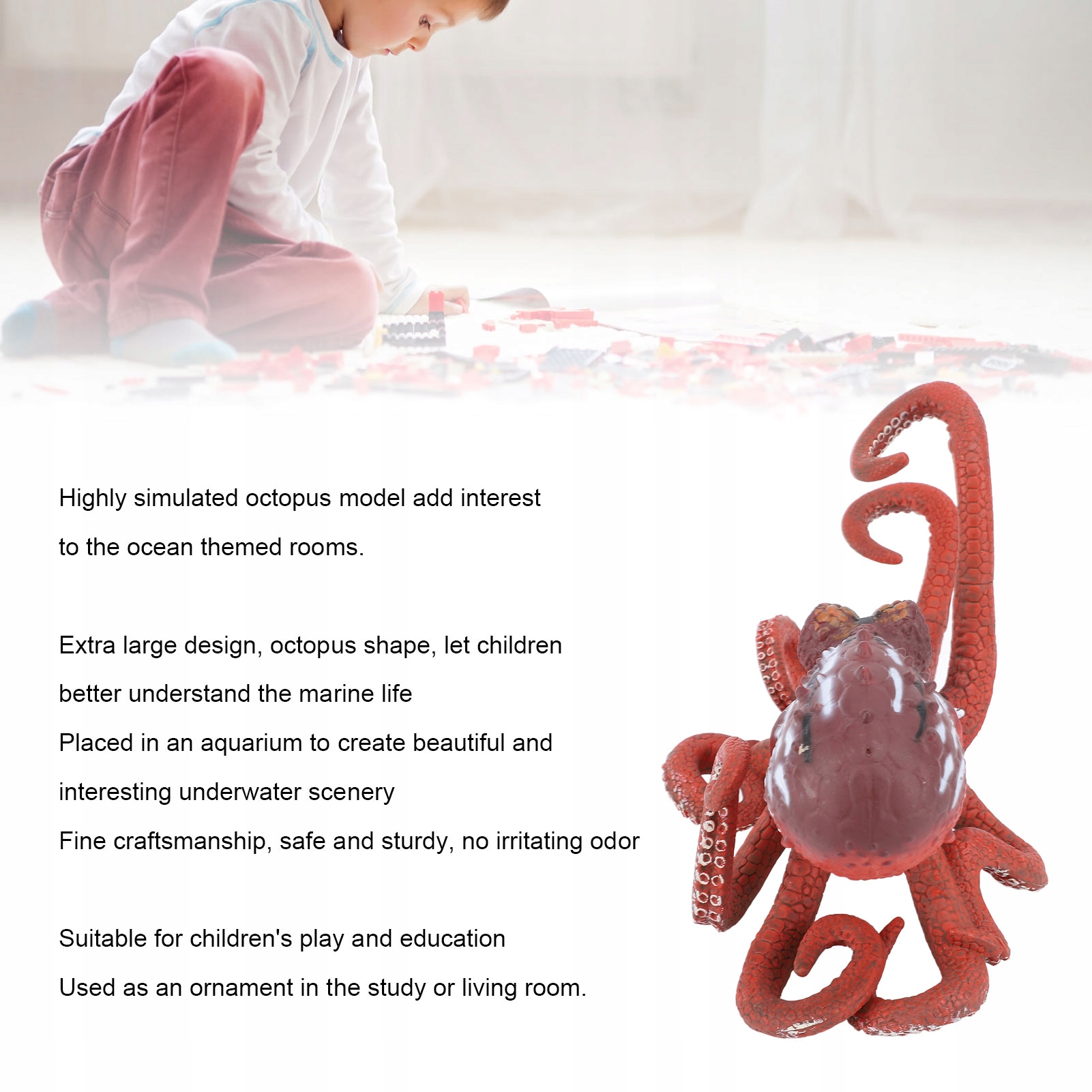 2. Дуже великі розміри: ця статуетка восьминога, розроблена у вражаючих розмірах, збільшує знання дітей про морське життя, робить навчання приємним та звиканням при відкритті світу океанів.