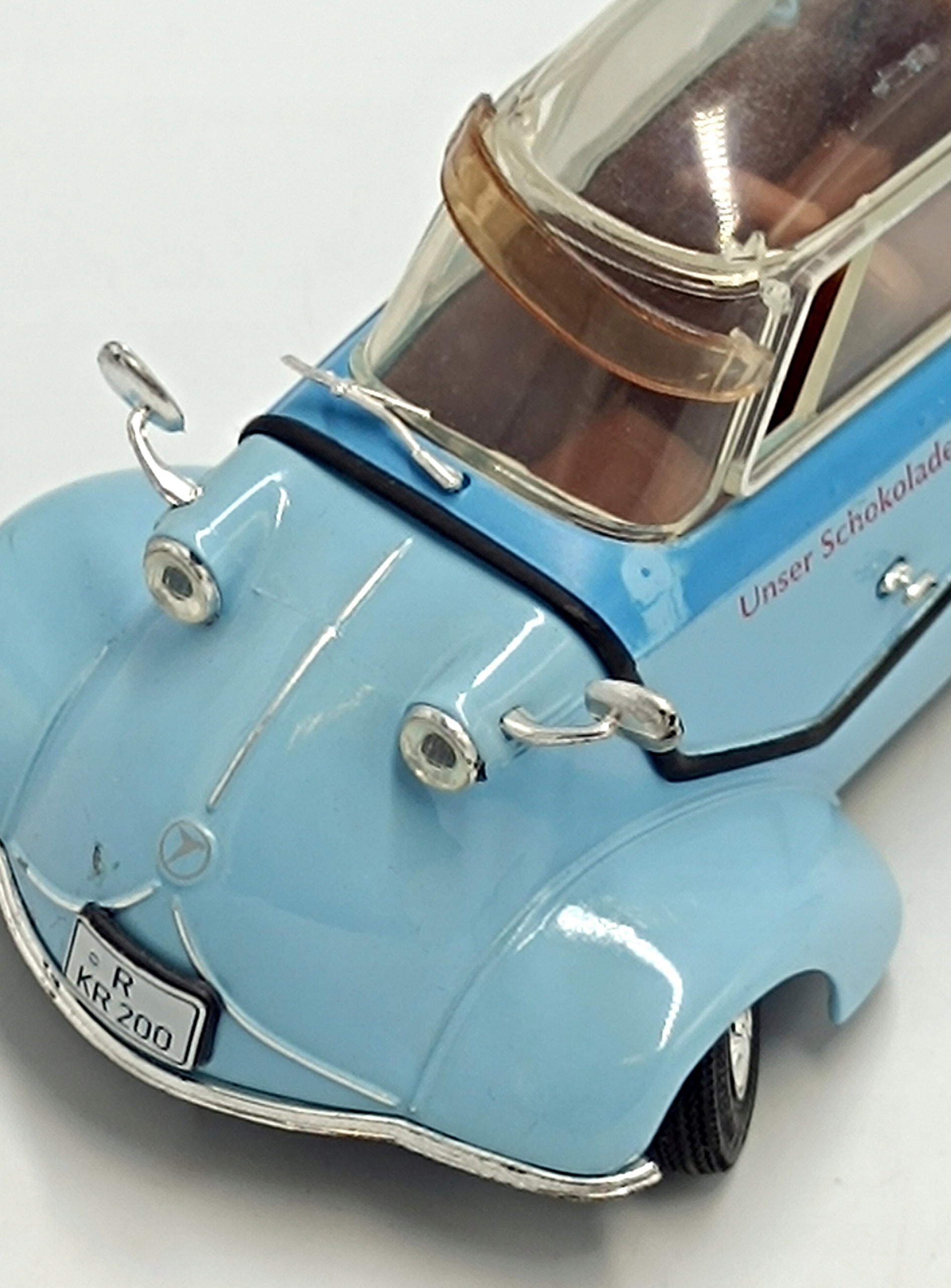 Ми представляємо чудову та унікальну модель автомобіля Revell від німецького бренду Messerschmitt KR200 в синьому кольорі.