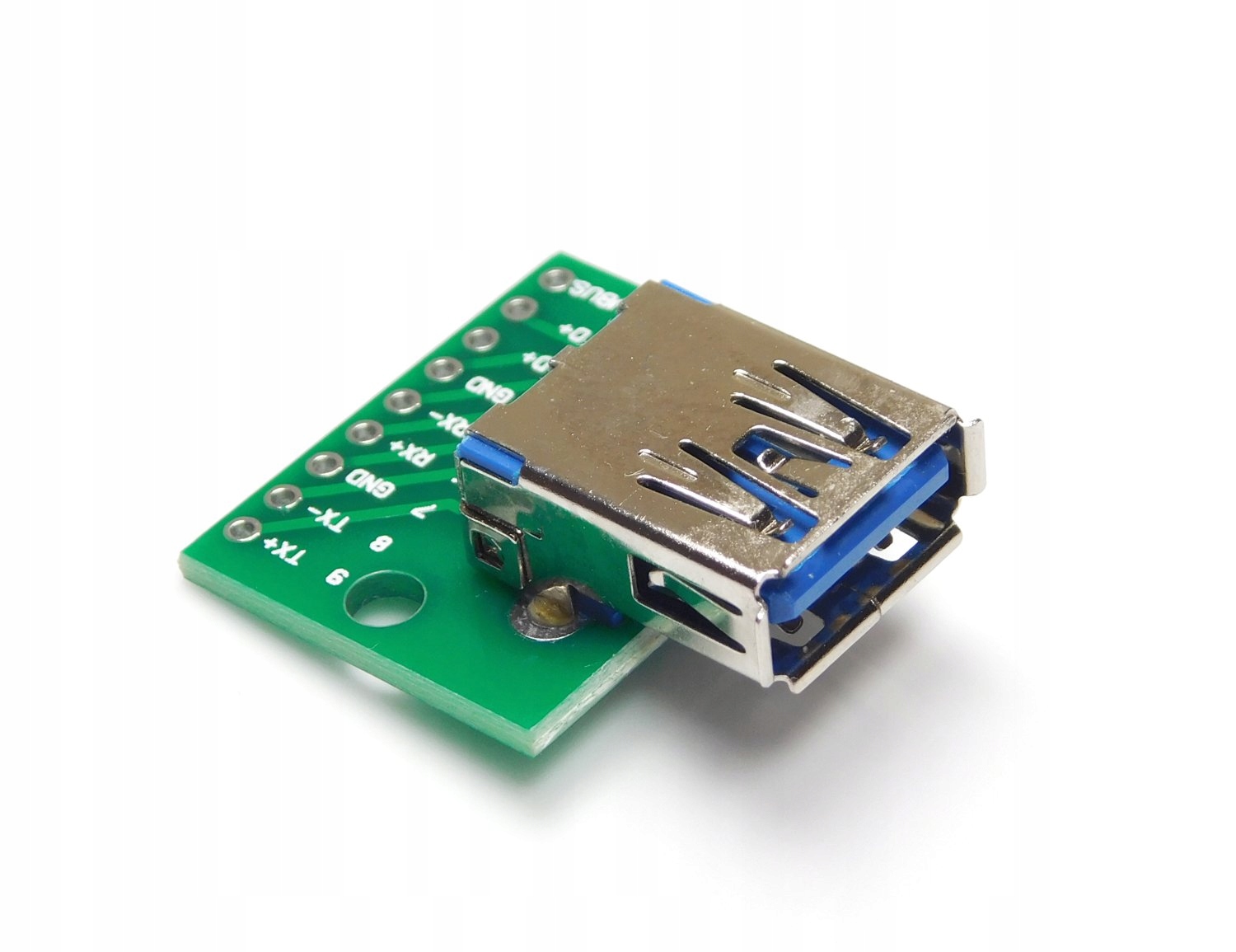 Адаптер-перехідник, гніздо USB 3.0 A (гніздо) на контактний роз’єм із золотим контактом (2,54 мм) для макетних плат, універсальних принтерів або для пайки проводів.