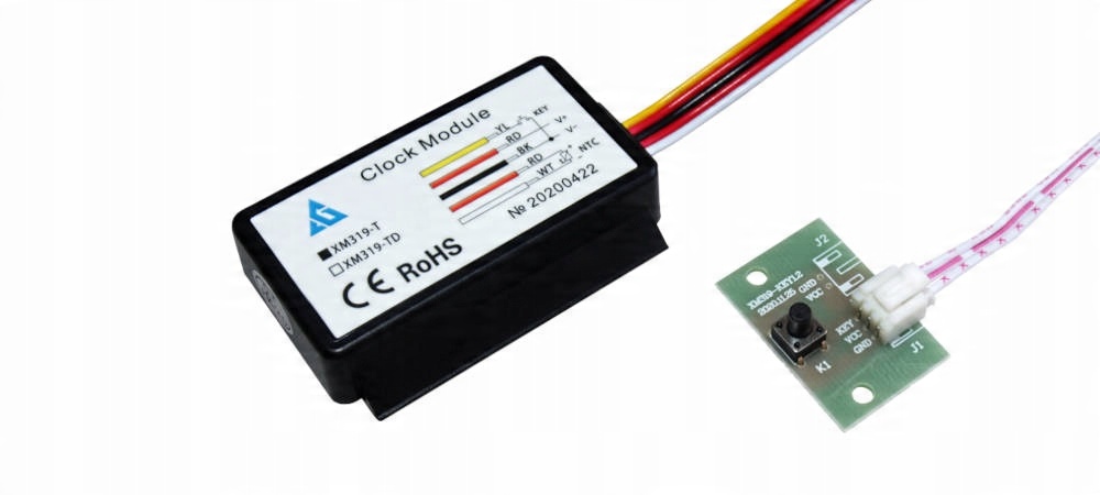 - Опис: XM319-T2: модуль часу/температури з прикріпленим датчиком і перемикачем регулювання