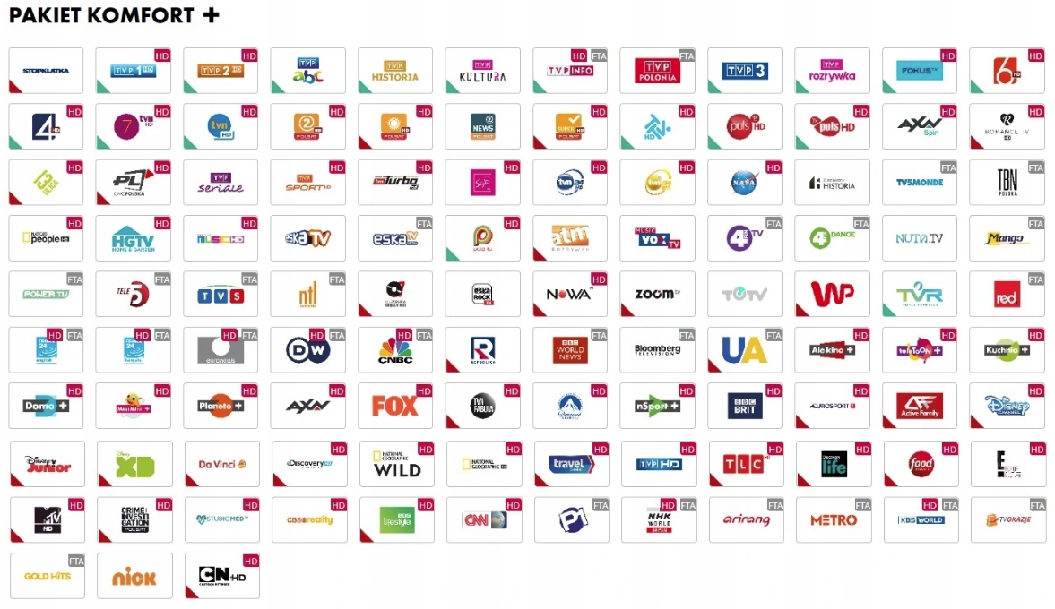 - пропозиція без контракту PrePaid , з поповненням від 19,99 злотих на місяць при купівлі поповнення на мін. 5 місяців (понад 80 каналів)