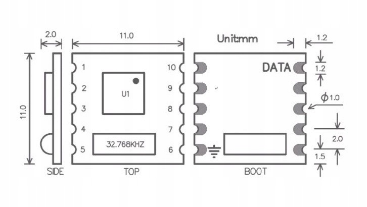 - Розміри 11,4 мм x 11,2 мм x 2 мм