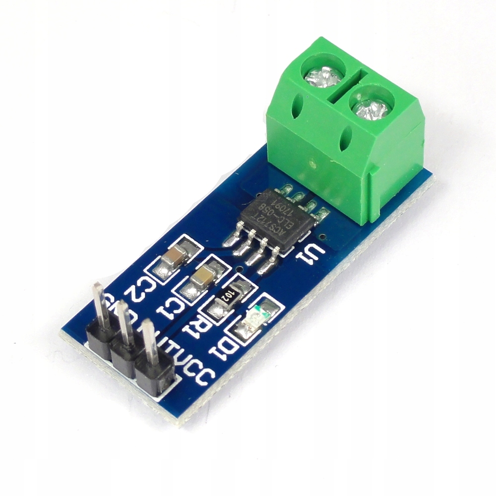 Датчик струму з використанням ефекту Холла для вимірювання. Сила струму вимірюється до 5 А, а його чутливість становить 100 мВ/А