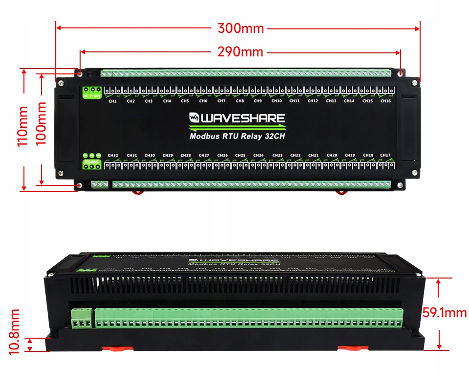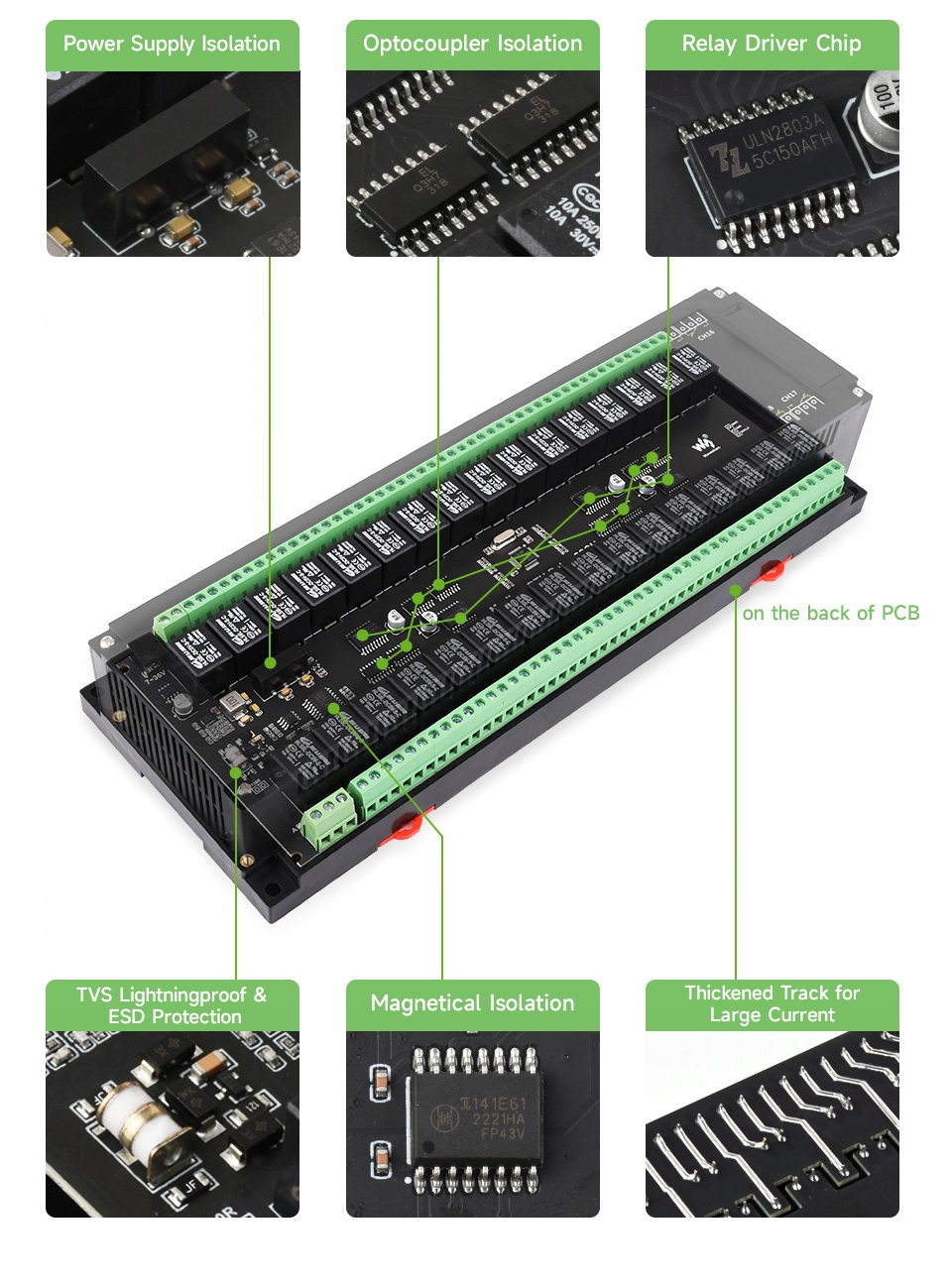модуль з 32 реле, керованими за допомогою RS485 Modbus RTU