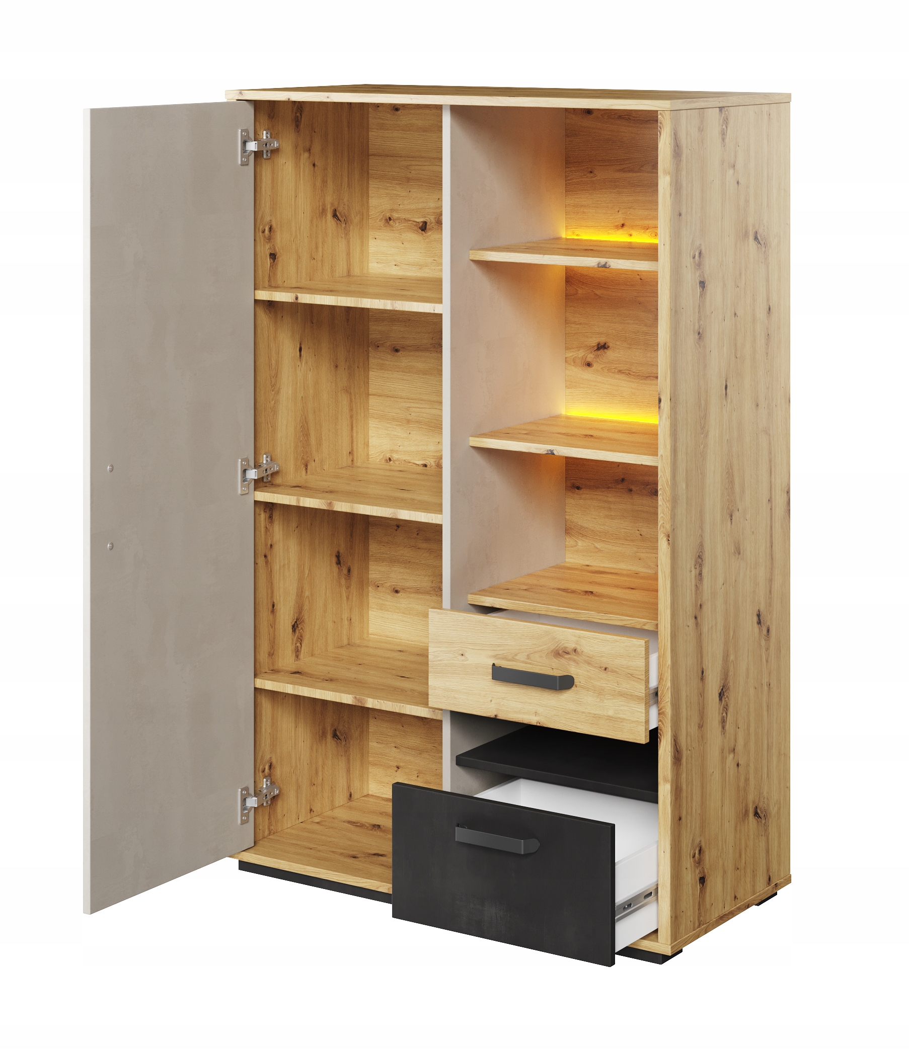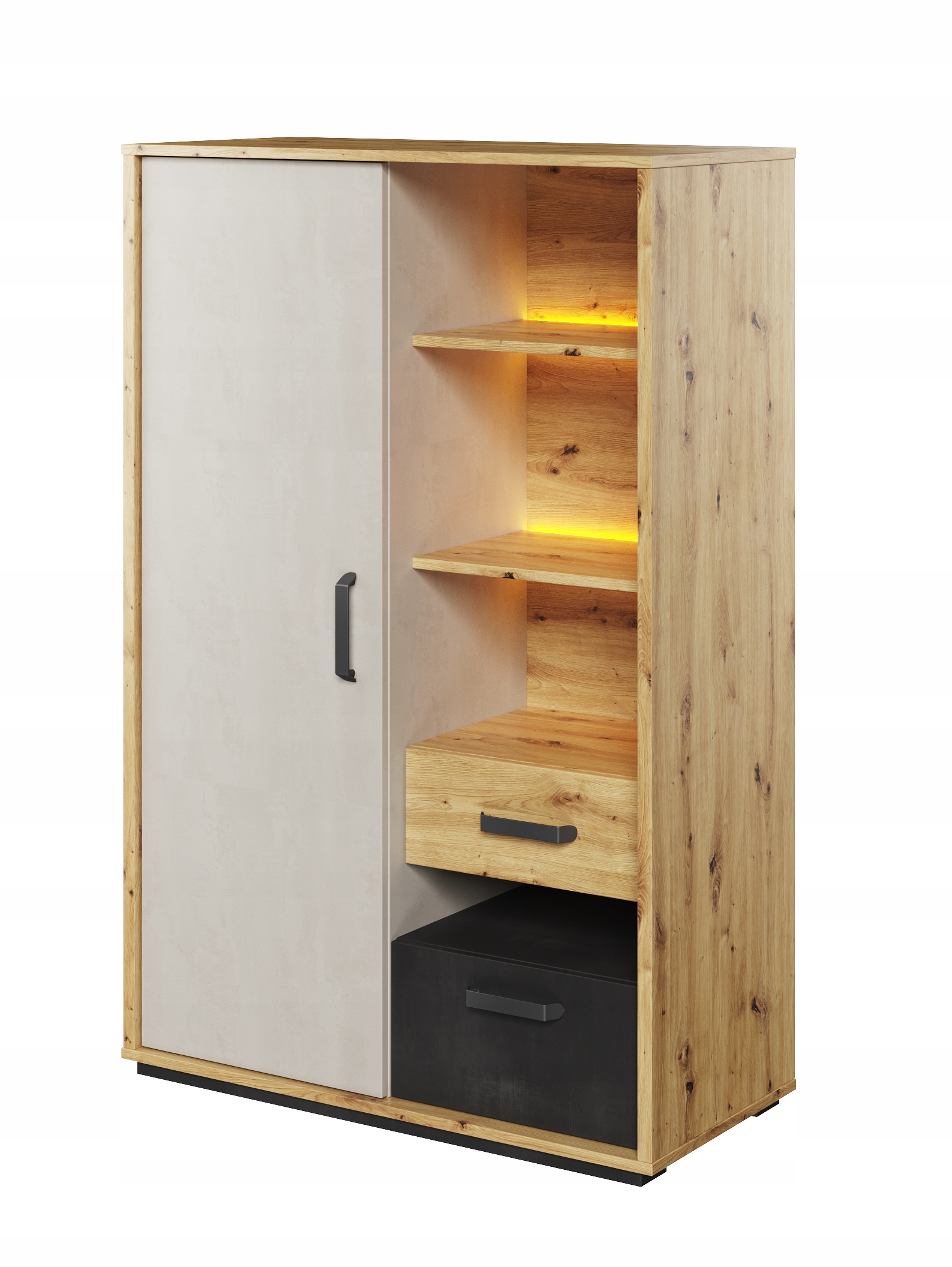 Завдяки цікавому поєднанню універсальних кольорів, ця система буде працювати як у кімнатах для дівчат, так і хлопців. Матові сірі фронти в поєднанні з декором теплої деревини та побудованого клімату -у світлодіодному освітленні змінить будь -який інтер’єр.