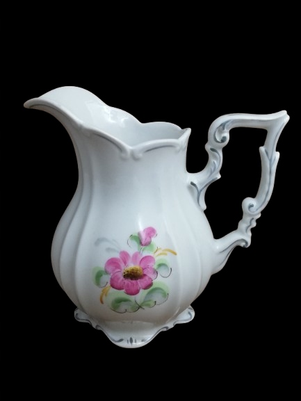 старе молоко, походження Німеччина, прикрашена квітами, зафіксована рука, підписана Шау Бах Кунст