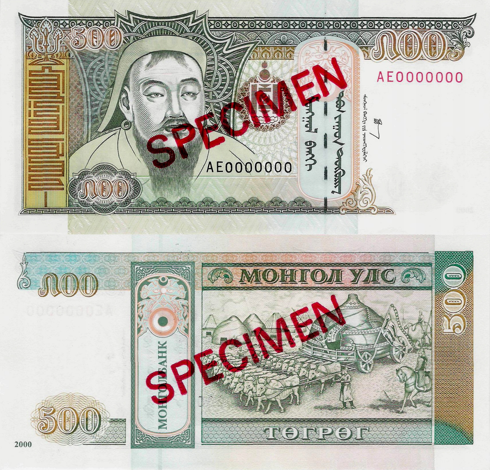 Mongolia 2000 - 500 tugrik - Pick 65A UNC SPECIMEN