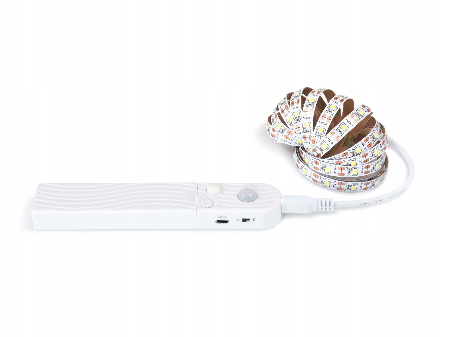 Набір світлодіодної стрічки 5В 1м - Холодний білий (6000К) + контролер з датчиком руху та сутінків для батарейок ААА