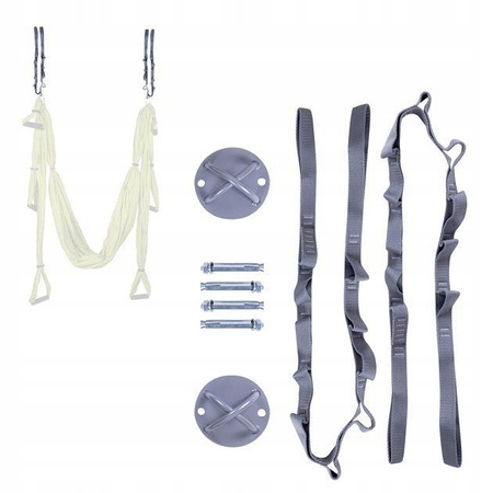 , встановлені для кріплення гамака до йоги - кронштейни, гвинти та вставки Belts insportline Hemmocoxstrap гарантують правильні та безпечні підозри на гамок. Нижні ремені коригування значно збільшують діапазон вправ, які можна виконати.