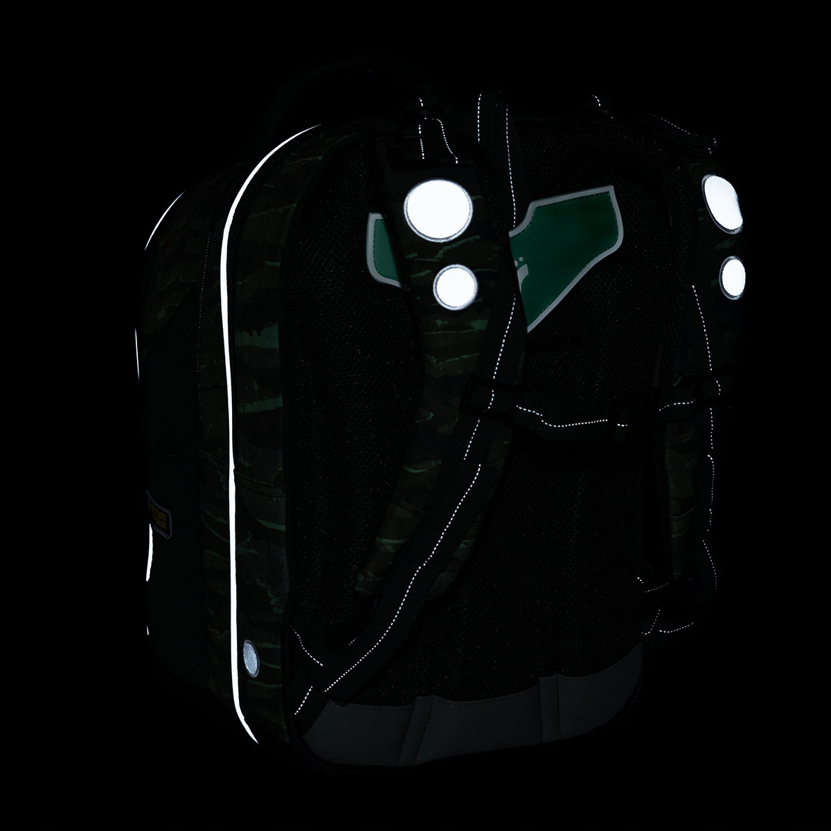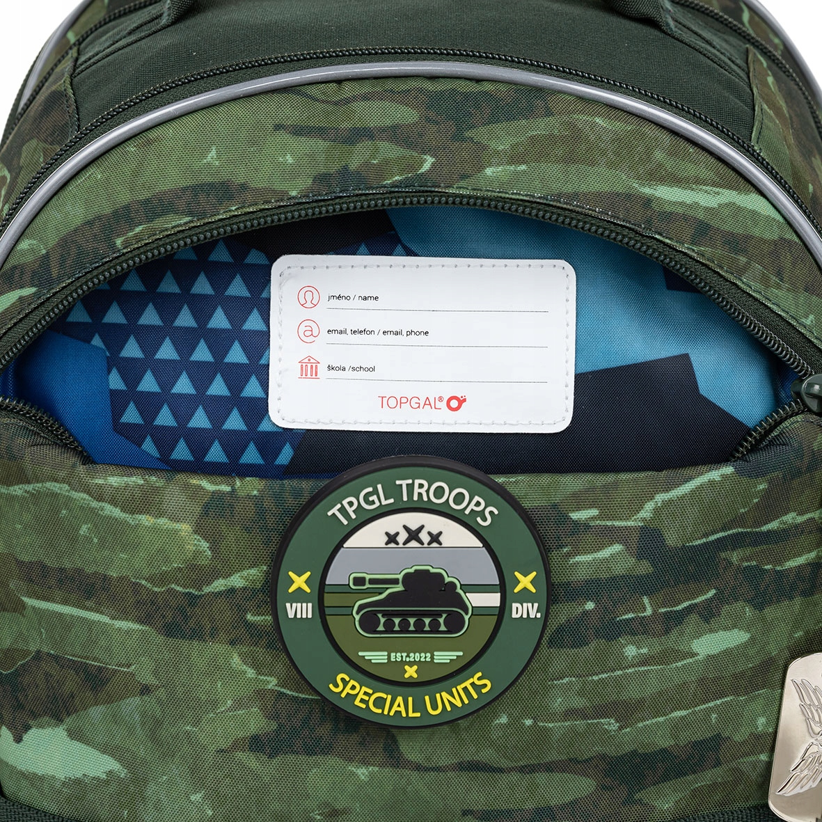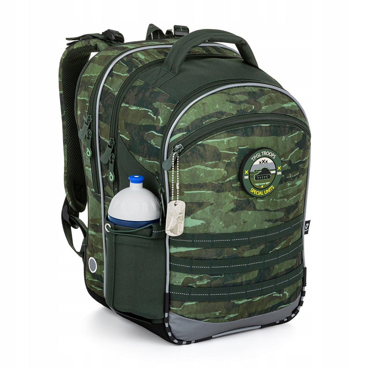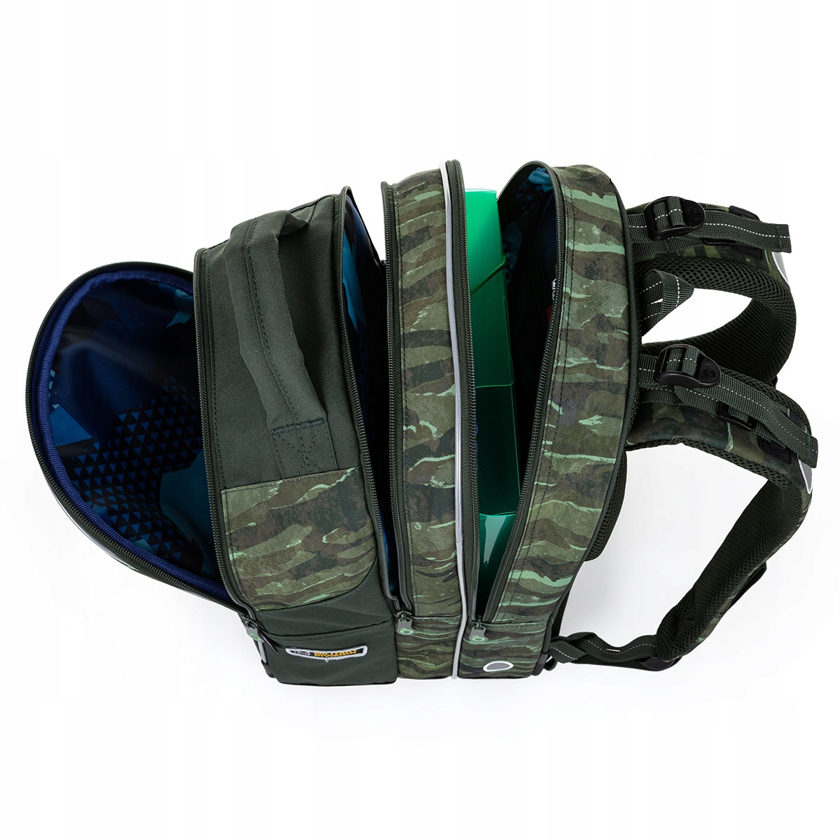 рюкзак Coco має три камери - це універсальний розріз, який буде корисним у класі 1-4. Він підійде до всіх книг як першокласників, так і четвертокласників (а іноді і до 5 класу, залежно від школи). Діти порадують оригінальний малюнок рюкзака камуфляж з магнітами , який можна замінити. Передня кишеня рюкзака має поверхню, до якої магніт можна легко і швидко прикріпити. Купуючи рюкзак Ви отримуєте три магніти на військові теми, в тому числі з танком. Ви можете придбати додатковий набір магнітів 23040. Ви також можете носити рюкзак без магнітів, тоді він має простий військовий дизайн.