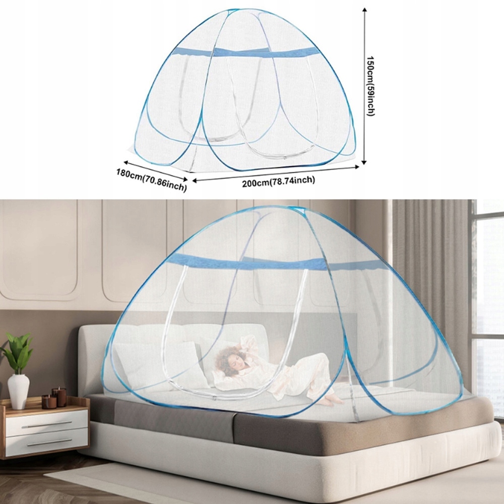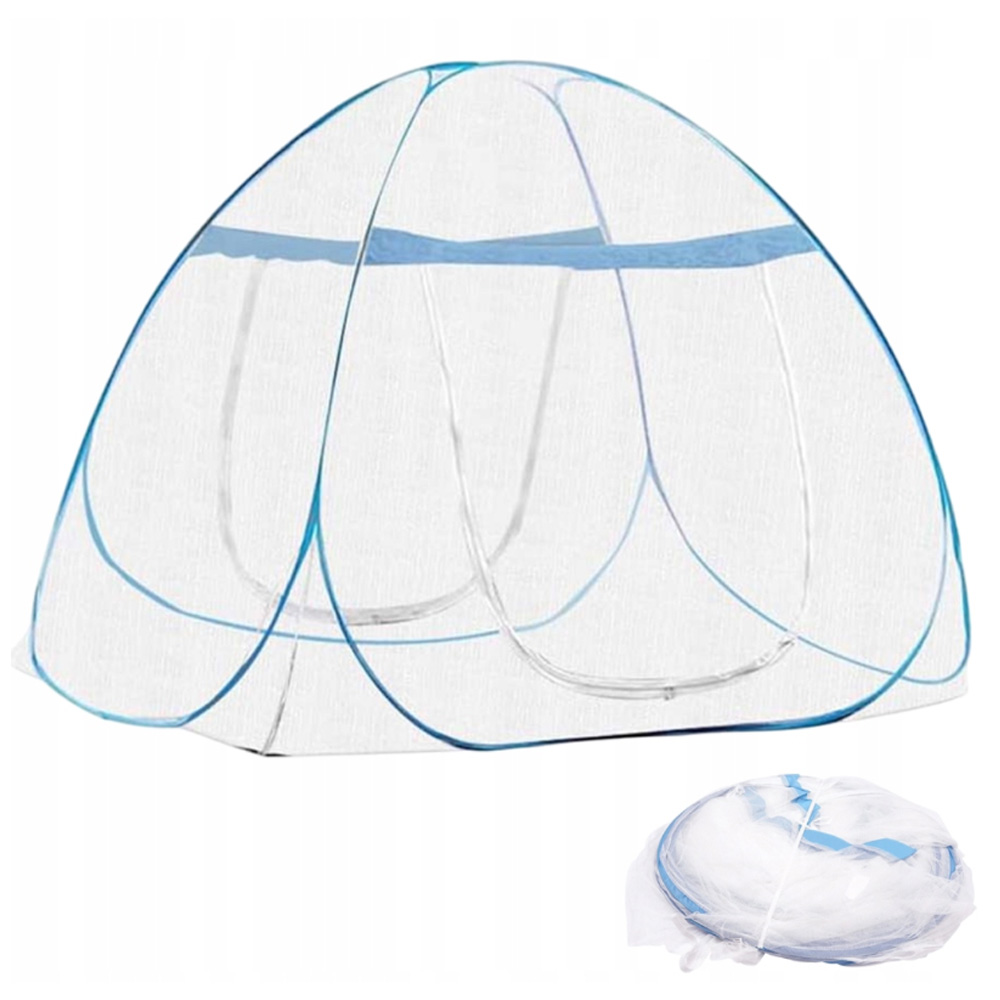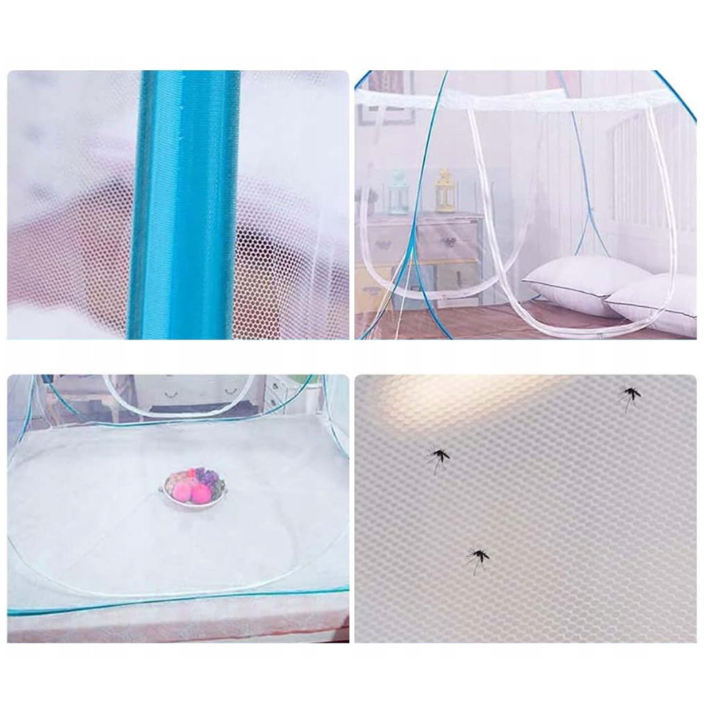 Завдяки автоматичній спливаючій конструкції та подвійним арочним дверима легко ввести та вийти; Вбудований -в рамці сталевого дроту з високою довжиною ефективно підтримує все чисте ліжко комарів. Повний захист на 360 ° для запобігання немовлят або дітей з ліжка.