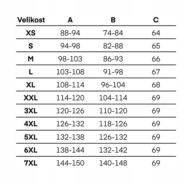 - для правильної посадки куртки дотримуйтеся наданої таблиці