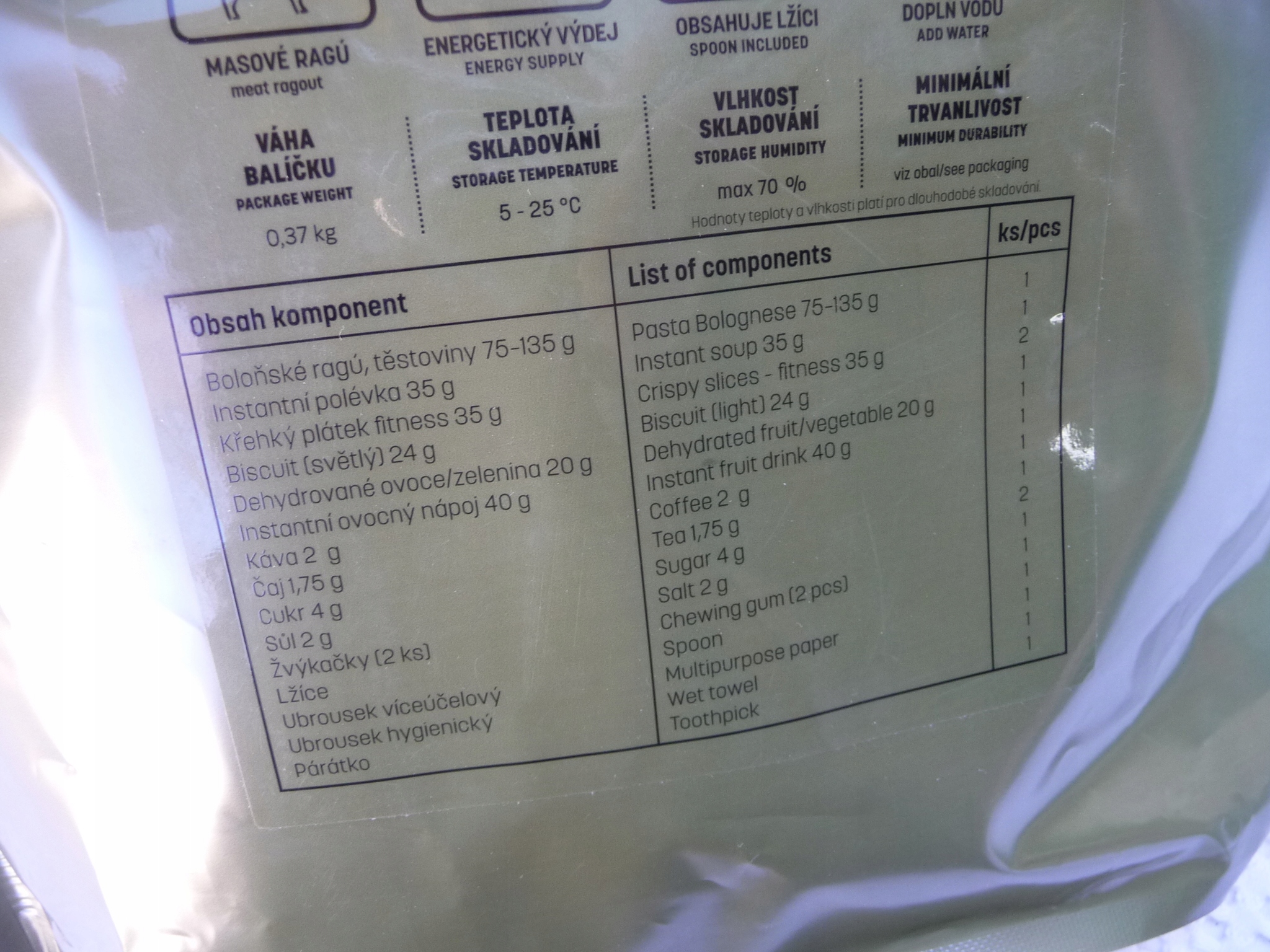MRE Чеська продовольча пайка Військова вечеря Ld6 SRG Виживання