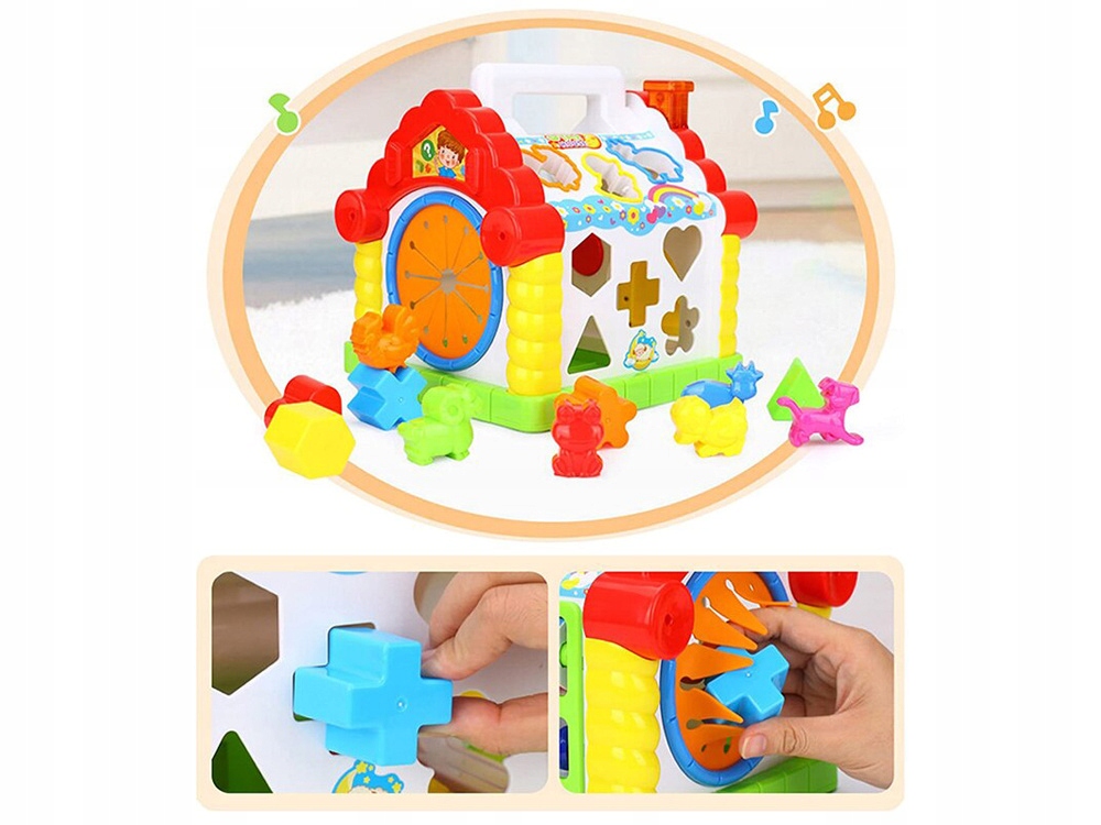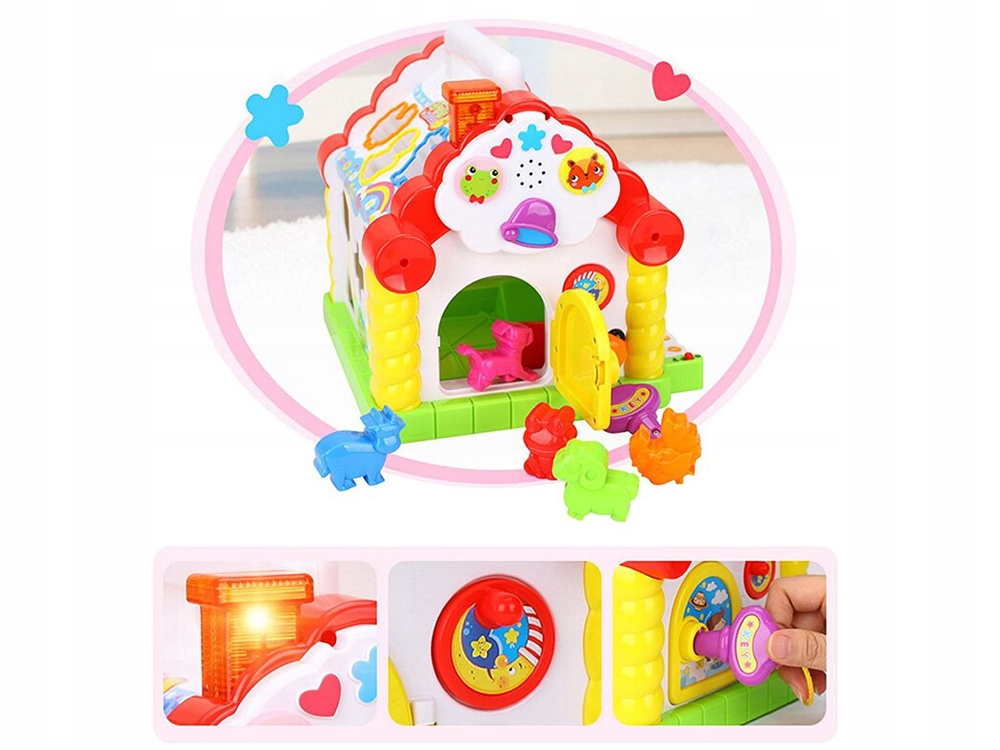 - Чарівний інтерактивний будинок у новій кольоровій версії. Це буде радувати та зацікавити кожну дитину цікаві нові відчуття. Фантастична іграшка, що росте з дитиною, буде незамінним супутником кожної забави. Нова іграшка дуже ретельно та естетично виготовлена в дуже яскравих привабливих кольорах. Люди, які знаходять дитину в іграшці:- фортепіано, яке грає індивідуальні звуки, а також цілі мелодії (7 популярних мелодій на вибір)- барвисті блоки з математичними завданнями (позначені числами та фруктами)- на даху є дірки у формі тварин і фігури, які будуть приймати тварину, після того, як це буде зафіксовано, що не є протилежним. З дверей є гумовий отвір, в якому дитина може завдяки дотику, вгадати форми даних об'єктів- 11 блоків у різних формах (фігури, тварин) завдяки цій іграшці дитина зможе практикувати:- навички ручного руху звучить- прості математичні завдання23 см х 25 см х 22 см. Інтерактивний будинок- 6 блоків- тварини (фуд, качка, півень, ягня, собака, żabka)- 5 блоків- фігури (серце, квітка, хрест, шостий, трикутник, трикутник) будинок чудовий як подарунок.
