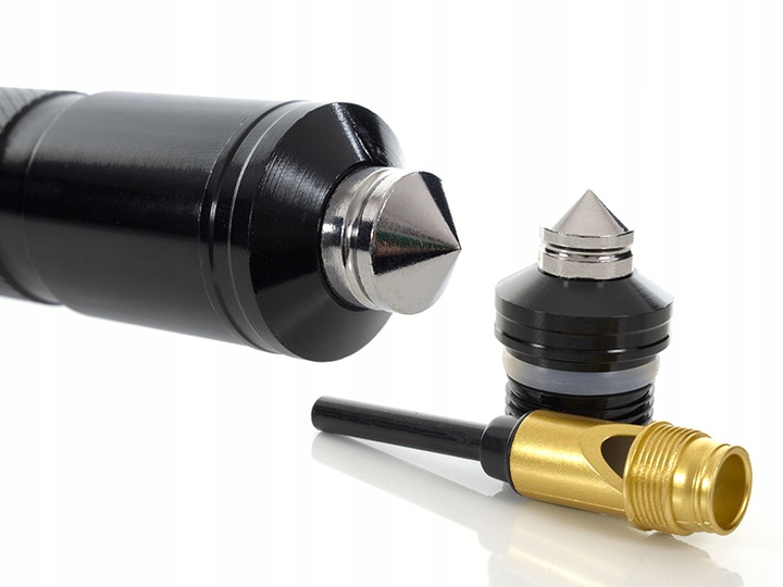 До останнього елемента ручки прикручується склобій, який може врятувати життя Вам або Вашим близьким у екстреній ситуації. Відкрутивши його, ви побачите трут, прикріплений до цвяхового пістолета, який допоможе розпалити вогонь на природі, а коли ви відкрутите його від кінцевого елемента, ви почуєте гучний свисток тривоги!