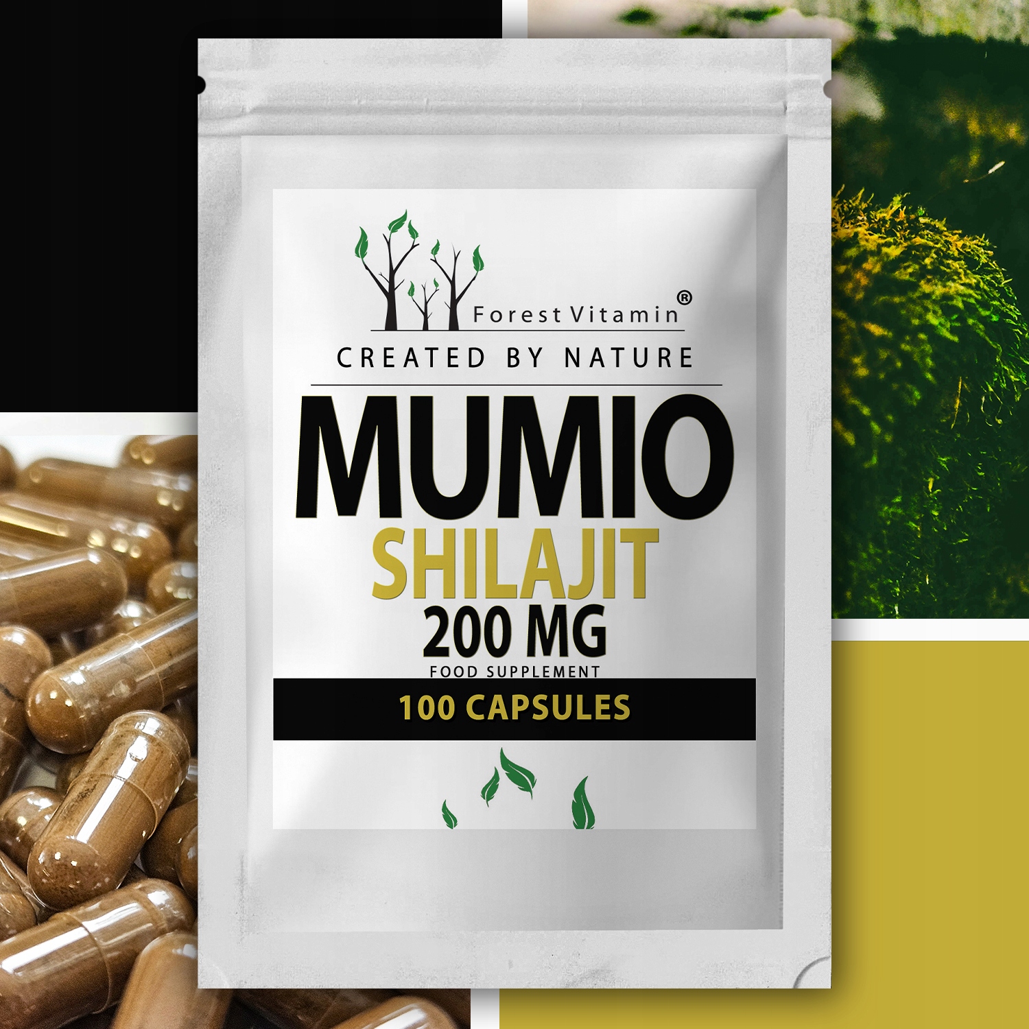 Наш Муміо знаходиться у вигляді желатинових капсул. Ці капсули виготовлені з желатину, який має походження тваринного походження. Чоловічі желатинові капсули легко ковтати, що сприяє їх використанню людям, у яких труднощі з ковтанням таблеток або порошків.