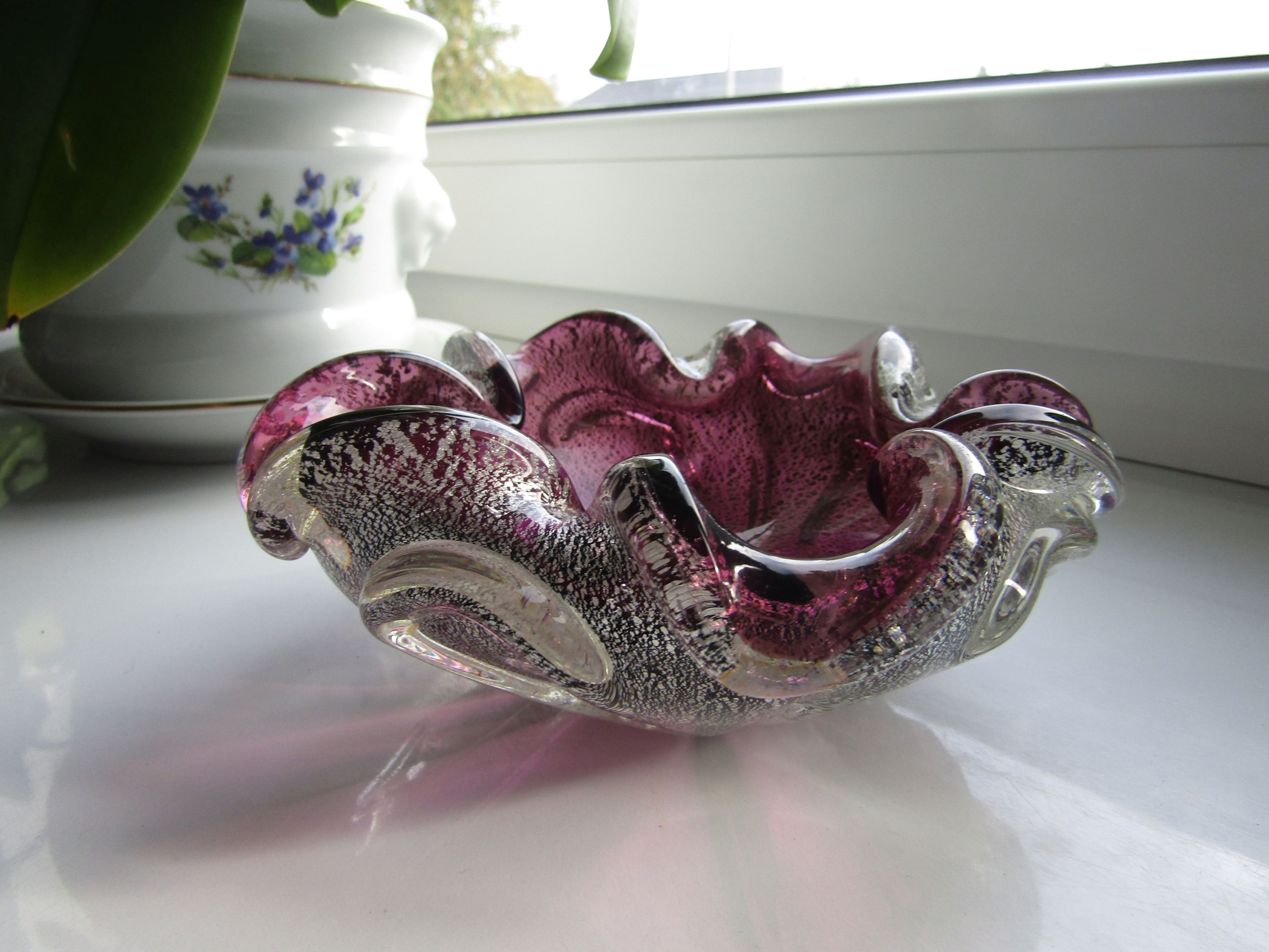 MURANO, PIĘKNA POPIELNICZKA NA CYGARA. LATA 60-70-TE. DROBINKI SREBRA.