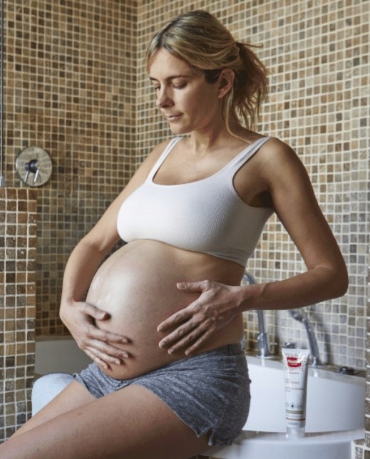 КРОК 2 : Нанесіть на живіт, стегна, сідниці та груди (щоб уникнути рубців після кесаревого розтину та сосків під час лактації).
