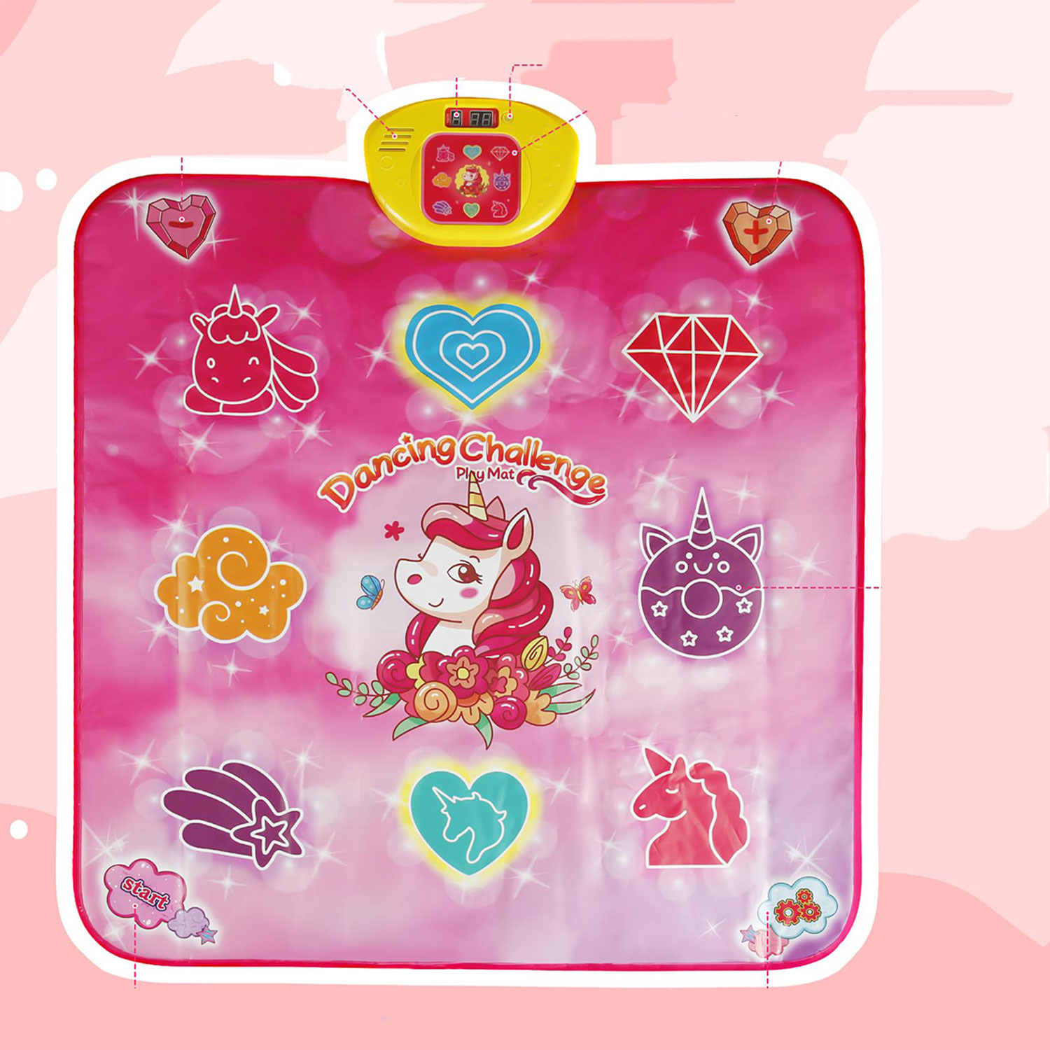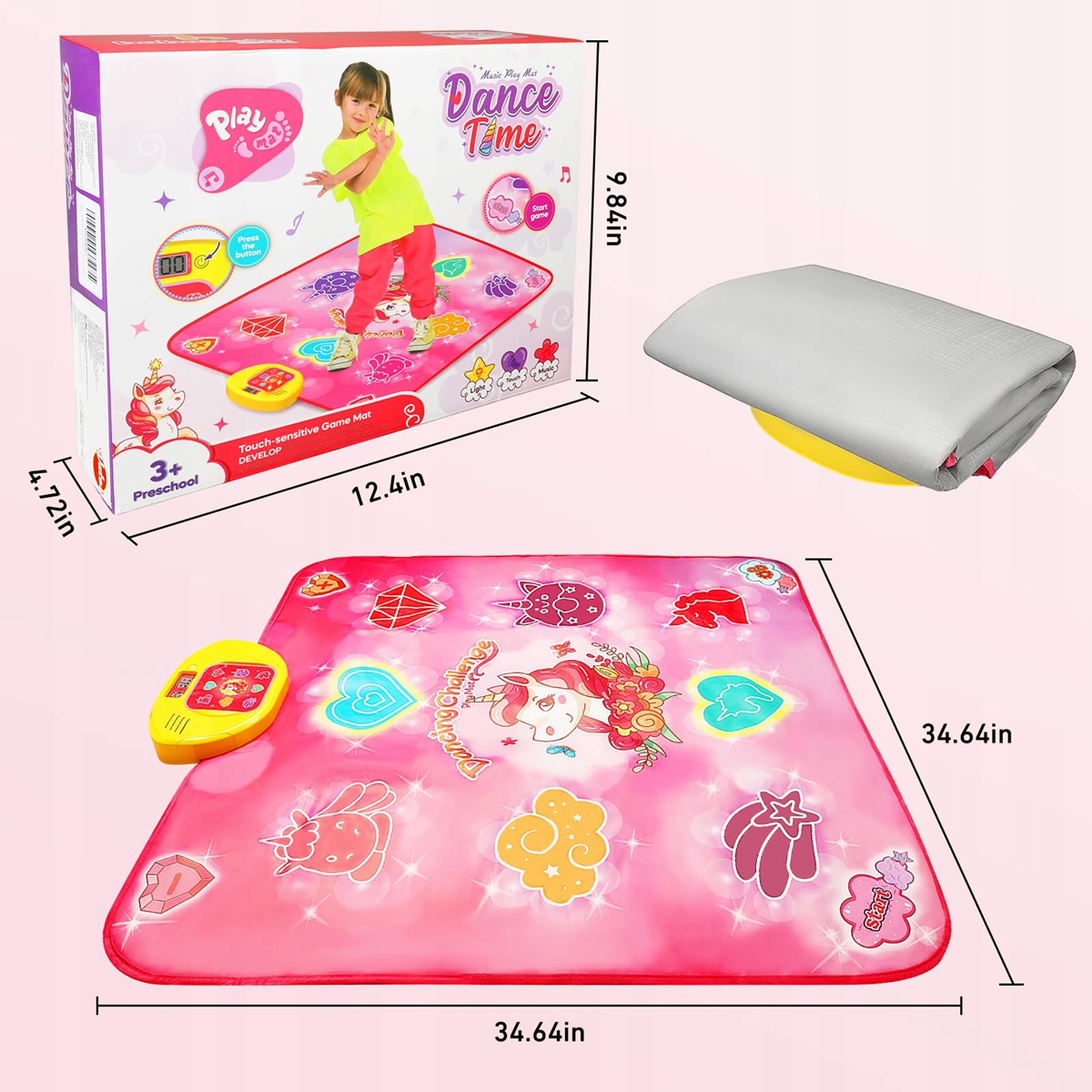 🕺🏻🕺🏻safe та відповідальний: цей танцювальний килимок для дівчат унікально розроблений і включає улюблені елементи дівчат. Зроблений з м'якого високоякісного нешкваного матеріалу для дівчат віком 3-9 років, ця музична іграшка є безпечною, нетоксичною, багаторазовою та легкою в очищенні. Танцююча іграшка має 8 музичних нот, які дуже чутливі і автоматично виявляють, коли дитина торкається або кроки на них.
