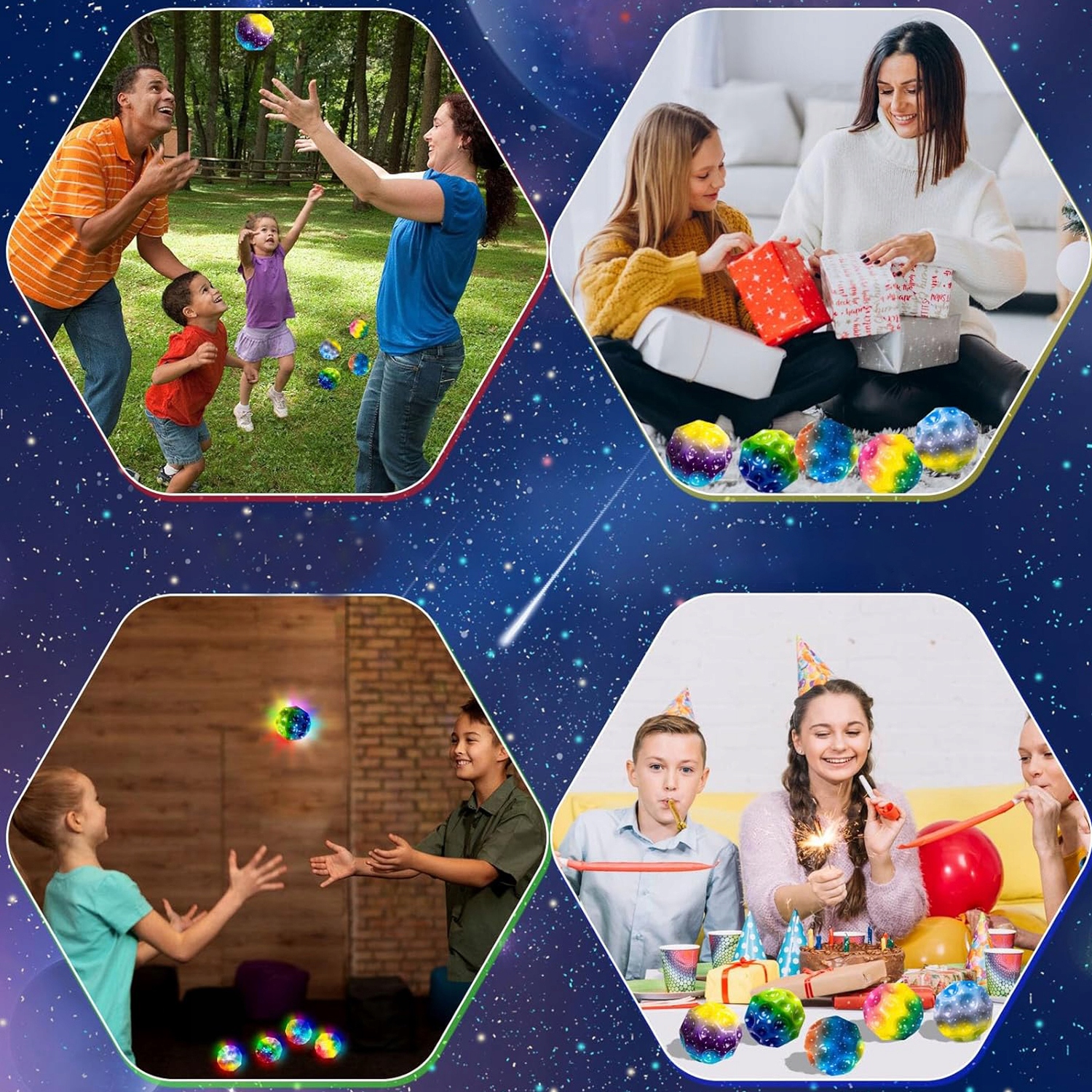 🌈 【Високо підстрибуючі м’ячі】: ці барвисті м’ячі дуже стрибучі та видають тріскаючі звуки. Під час гри на підлозі чи іншій твердій поверхні ви можете почути тріск. У порівнянні зі звичайними маленькими гумовими м’ячами та супер-м’ячами гравітаційні м’ячі мають іншу еластичність, вищі та можуть підстрибувати на відстань до 30 метрів. Не турбуйтеся про гнучкість м’яча з місячного пінопласту, оскільки він дуже міцний.