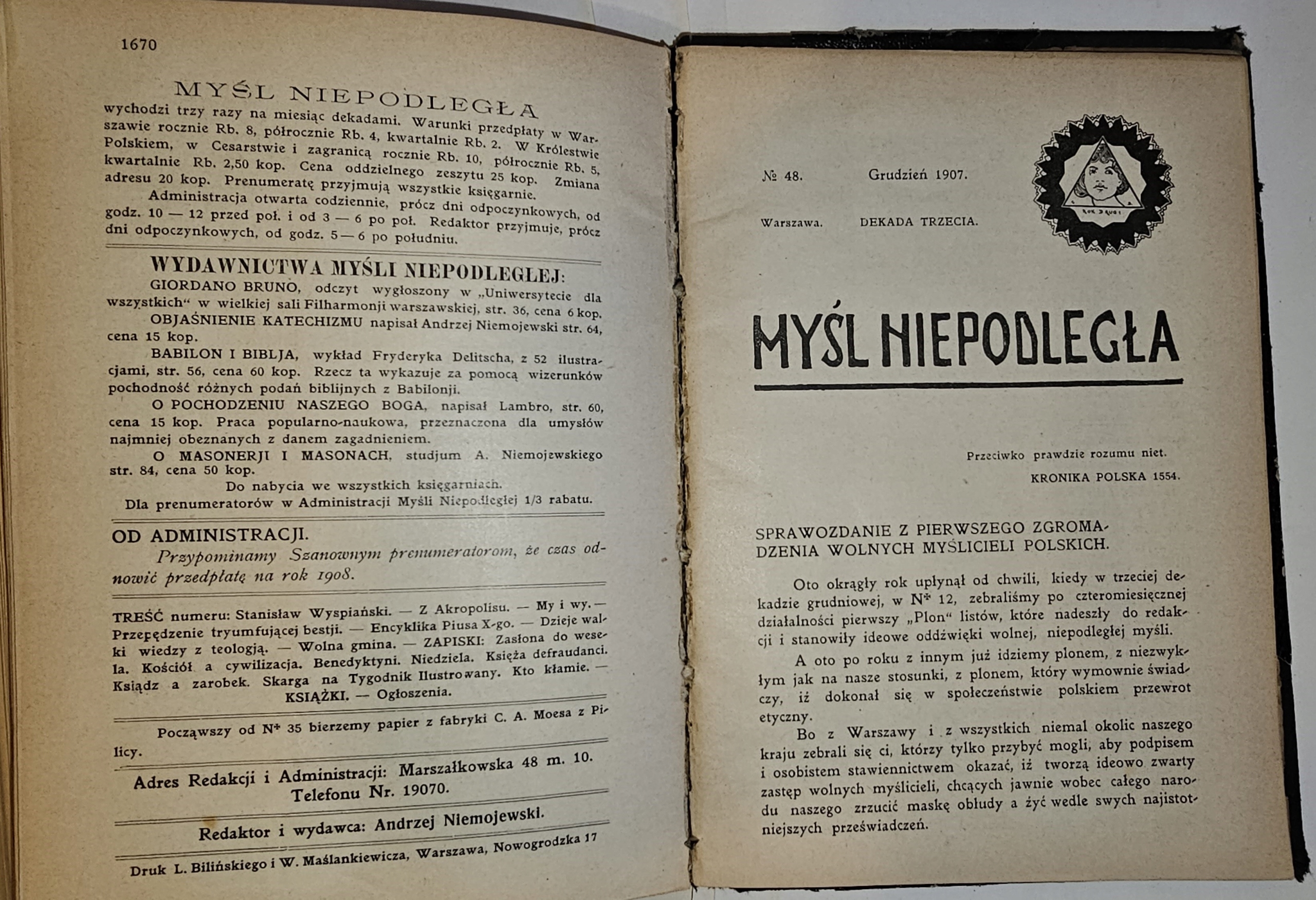 MYŚL NIEPODLEGŁA, ROCZNIK 1907, NR 13-48