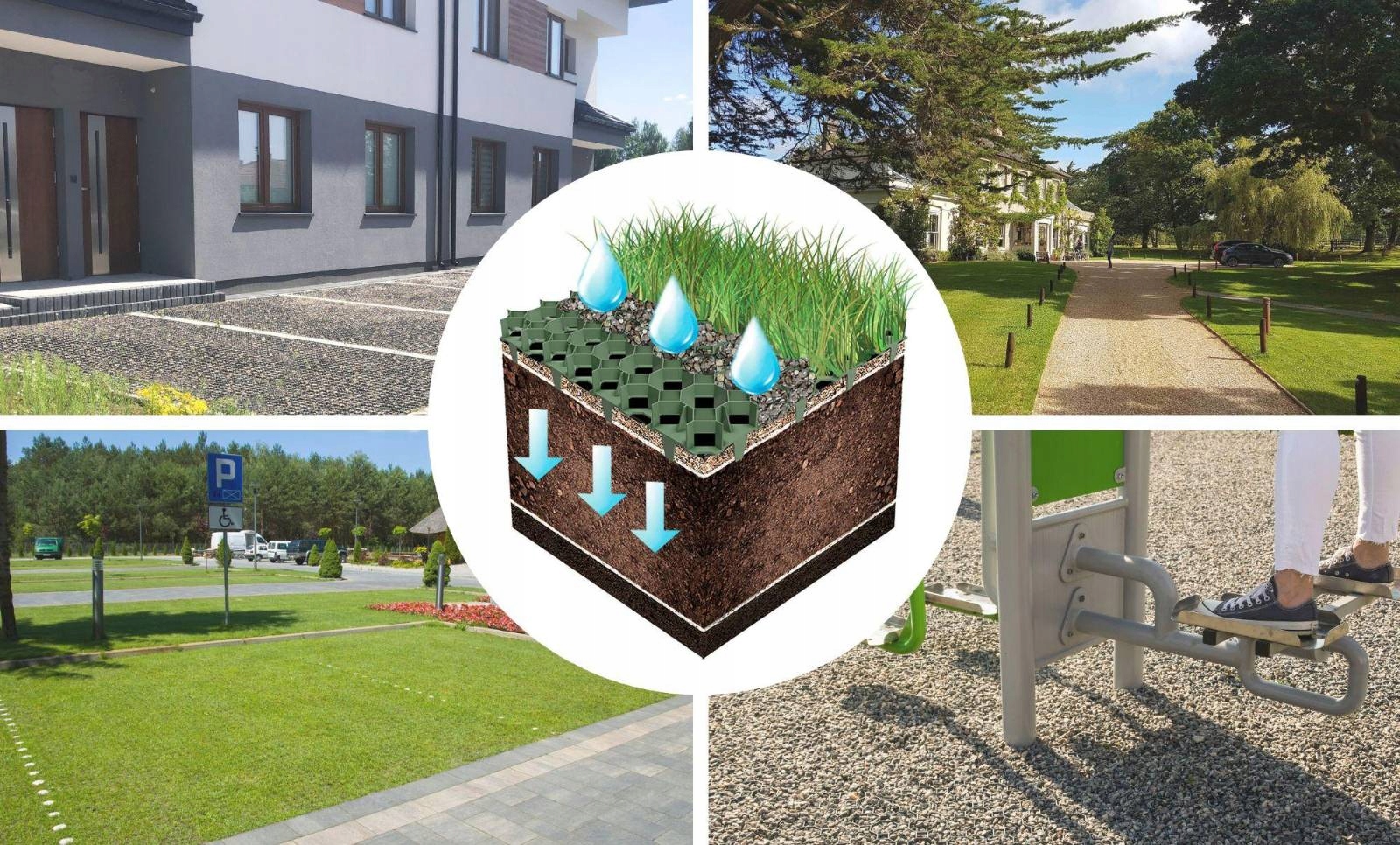 Сітка є альтернативою бруківці, асфальту чи бетону та особливо підходить для місць, де потрібно підтримувати біологічно активну поверхню.