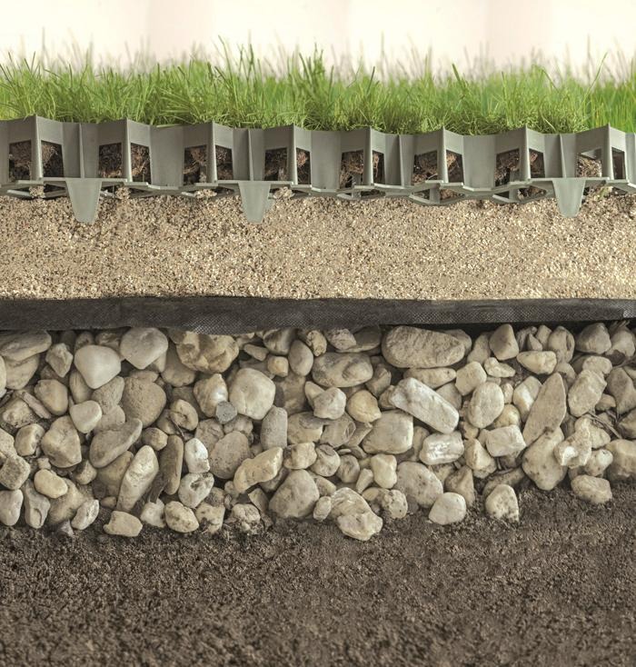 Газонна сітка є ідеальним рішенням для розмітки доріжок виготовлений із заповнювача. Завдяки використанню сітки витрачається набагато менше, і, крім того, ми отримуємо рівну площу, не змішану з брудом.
