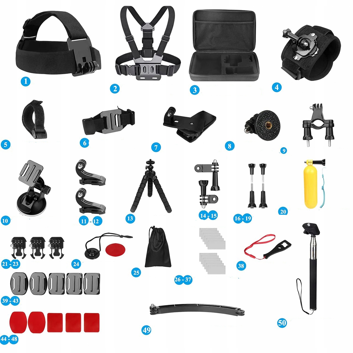 Набір аксесуарів для 50 -річних спортивних камер, сумісних з героєм GoPro 12 11 10 9 7 6 5 4