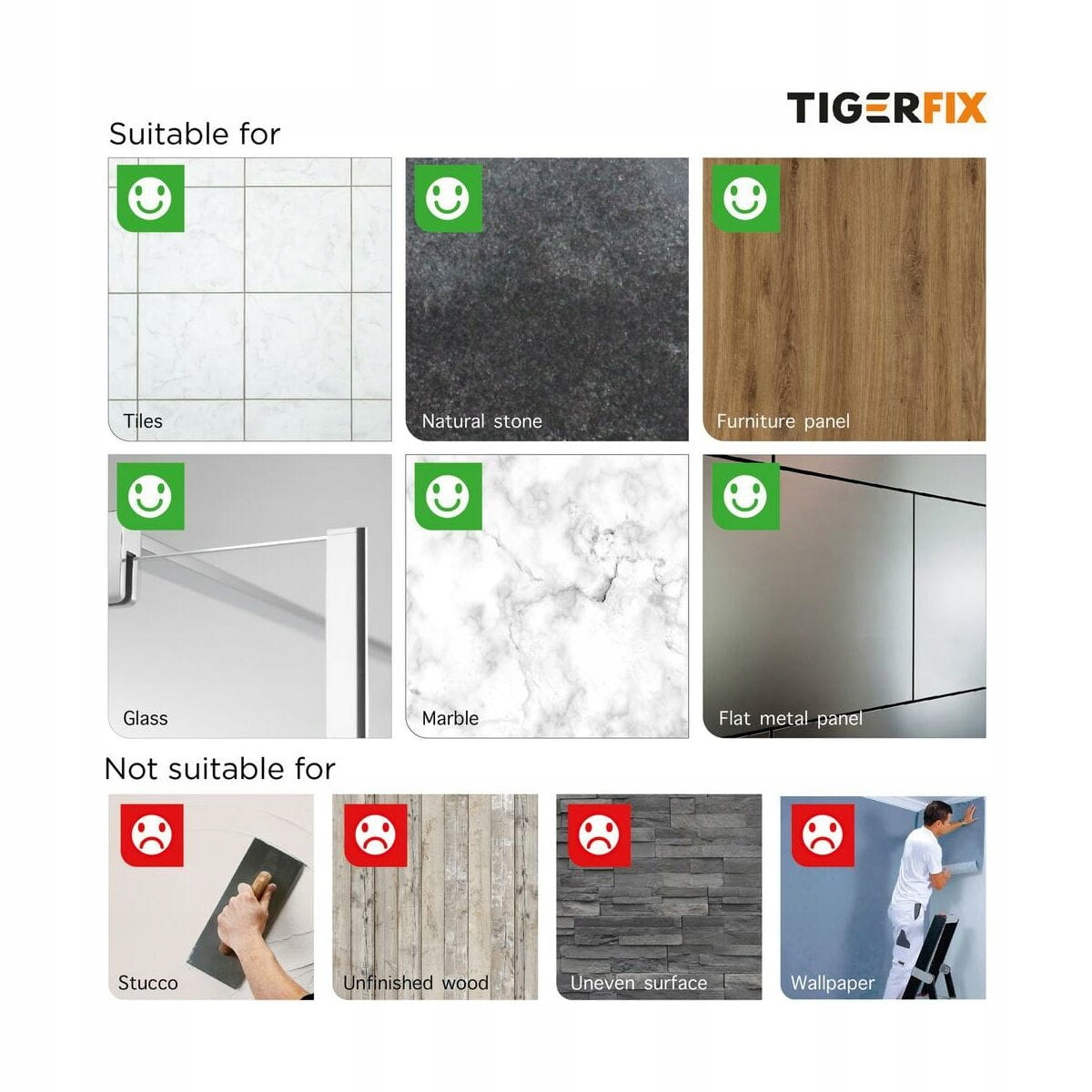 Використовуючи запатентовану клейову систему TigerFix Type 1, ви можете швидко та легко прикріпити аксесуари для ванної кімнати до гладких твердих поверхонь. Цей продукт робить декорування вашої ванної кімнати аксесуарами Tiger надзвичайно простим. Використовувати цей клей дуже легко, після його змішування ви можете швидко та легко нанести його на настінну плитку, а потім встановити аксесуар через 4 години.