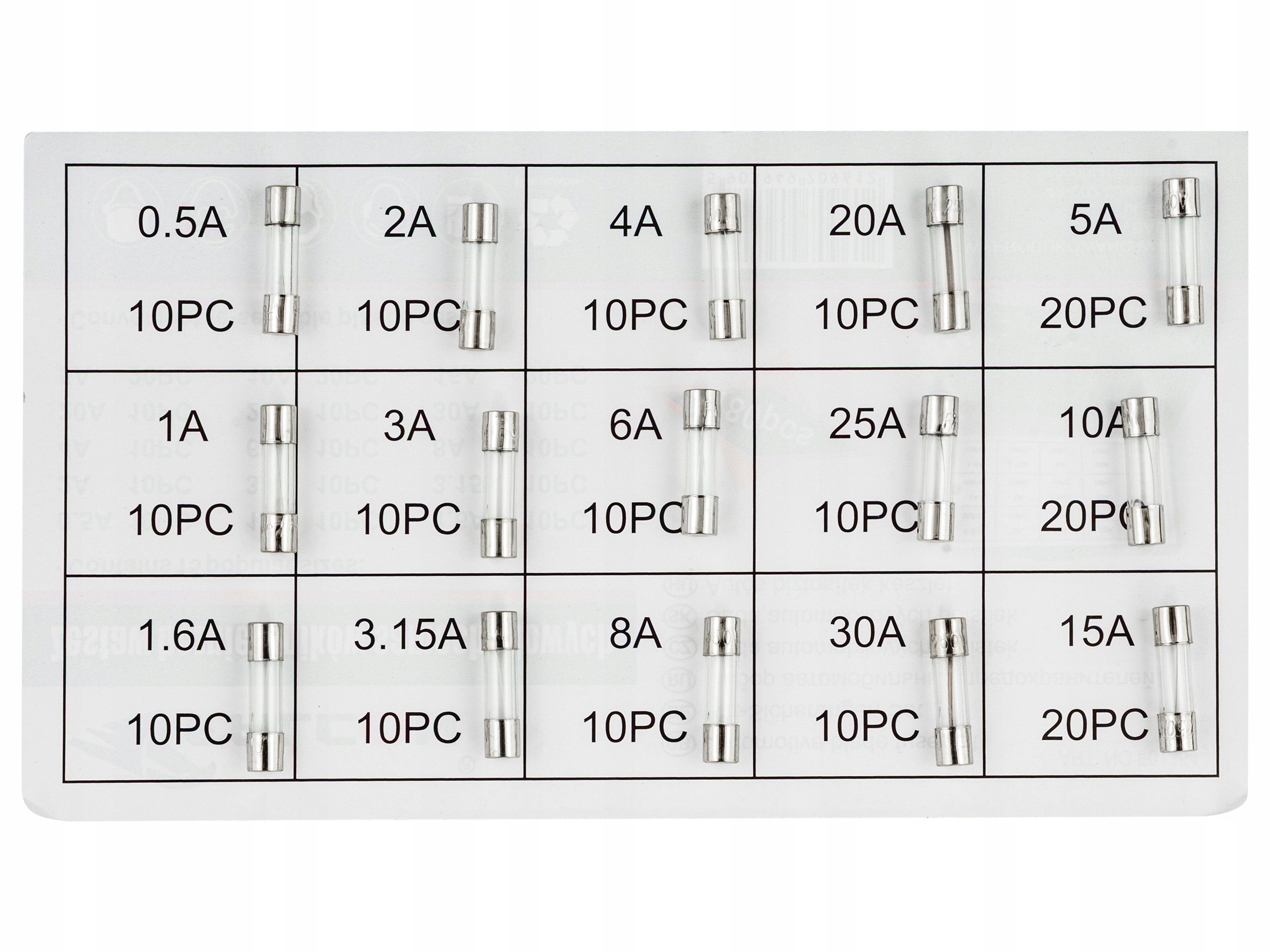 ⭐ набір скляних запобіжників 0,5-30a 180 штук
