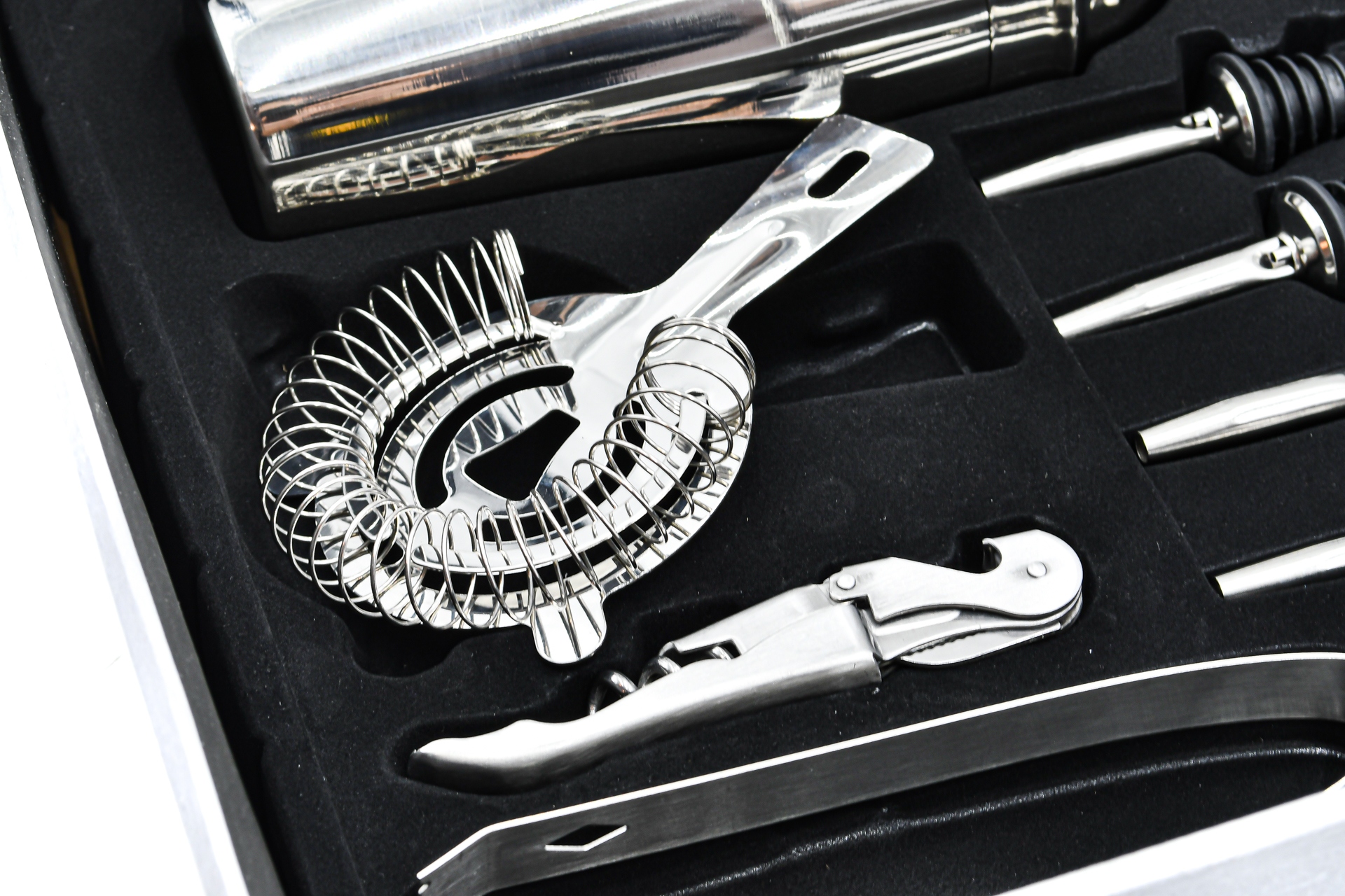 Цей набір з 11 предметів, який ідеально підходить як для домашнього використання, так і для елітних закладів, містить усе необхідне для створення майже безмежного асортименту фірмових коктейлів і безалкогольних коктейлів: