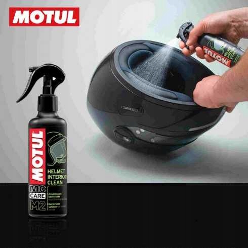 MOTUL HELMET INTERIOR CLEAN M2 - це препарат з бактерицидними та фунгіцидними властивостями, призначений для дезінфекції та глибокого очищення внутрішньої частини шолома. Видаляє забруднення та нейтралізує неприємні запахи, при цьому дбайливо ставиться до шкіри, що підтверджено дерматологічними тестами. Завдяки цьому внутрішня частина вашого шолома залишатиметься свіжою та чистою, незалежно від інтенсивності використання.
