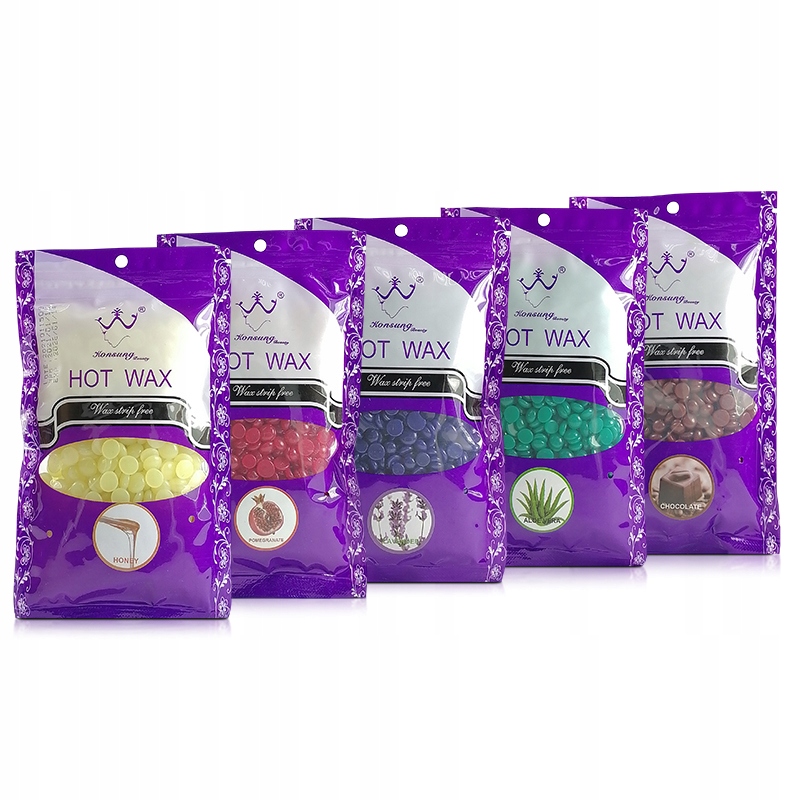 В набір входить 5 упаковок воску:медовий, шоколадний, алое, лавандовий і трояндовий.