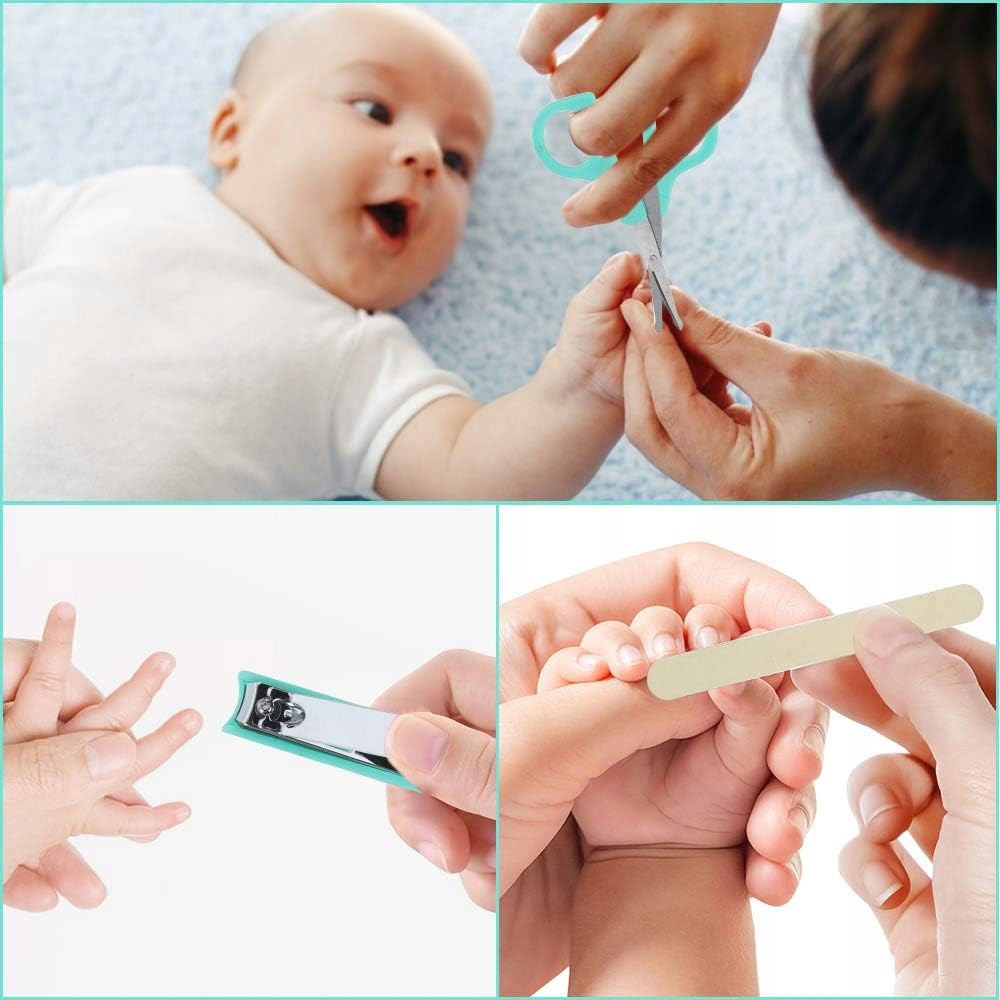 Набір для догляду за немовлятами з 10 предметів складається з ножиць для новонароджених, 3 пилок для нігтів, спеціальної щітки для новонароджених, спеціальної гребінця для новонароджених, носових присосок для новонароджені, зубна щітка, кліпса Booger, сумка для зберігання.