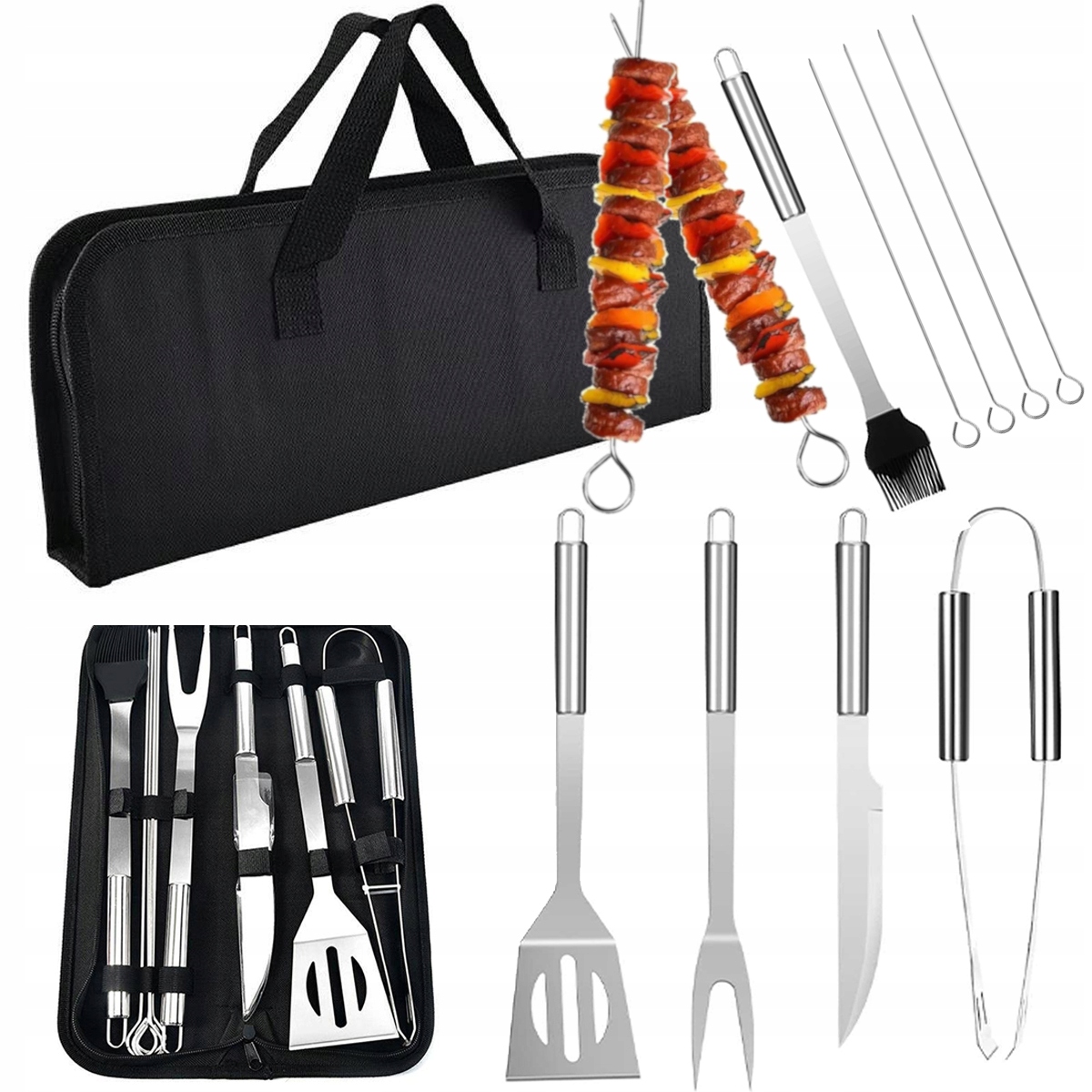 Набір з 9 предметів для гриля з нержавіючої сталі в практичному футлярі на блискавці