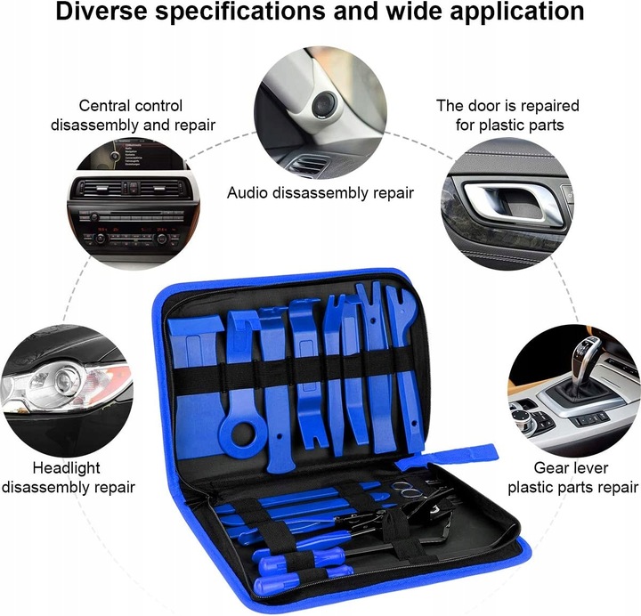✅ Багатофункціональність: набори включають різноманітні інструменти, які дозволяють розбирати різні деталі, від оббивки дверей, панелей приладів до сидінь.