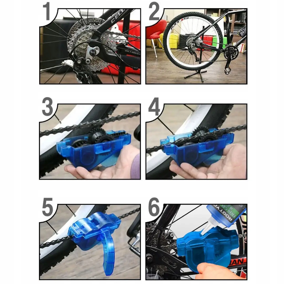 Спеціаліст з очищенням ідеально проникає в всі куточки ланцюга. Видалення бруду, пилу, жиру та інших родовищ з нього. Агент базувався на біологічних розчинниках, тому вам не потрібно турбуватися про безпеку навколишнього середовища. Також включено до набору. Щоб зберегти велосипедний ланцюг у найкращому стані, після його очищення він повинен бути змащений, а обладнання готова до подальшої дороги.