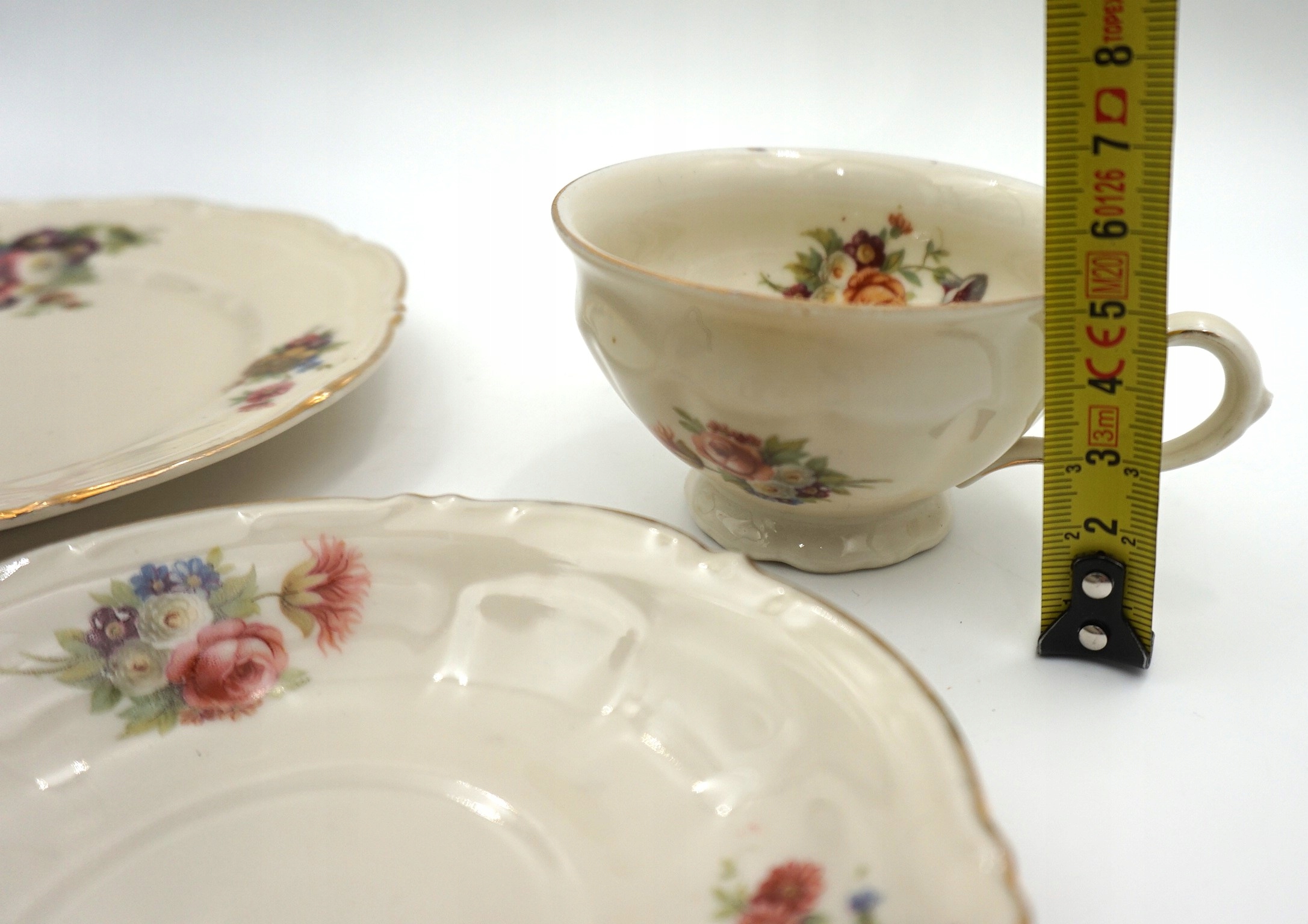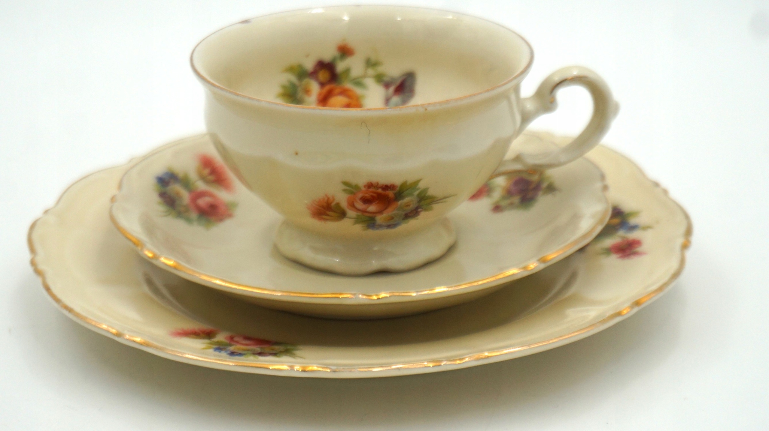 Порцеляна ніжного кольору екрю з красивими різнокольоровими квітами