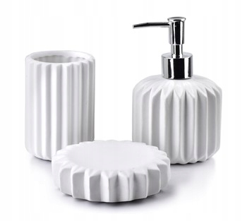 Керамічний гарнітур для ванної серії FERRA. Має рельєфну поверхню - ідеально впишеться в сучасну ванну кімнату зі сріблястим покриттям. упаковано в коробку з віконцем розміри: 20см х 22см х 9см