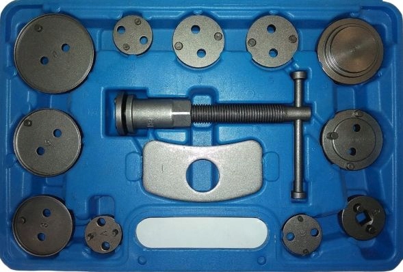 Набір використовується для зворотного (стиснення) поршнів у циліндрах гальмівної системи. Необхідний для ремонту транспортних засобів, оснащених дисковими гальмами.