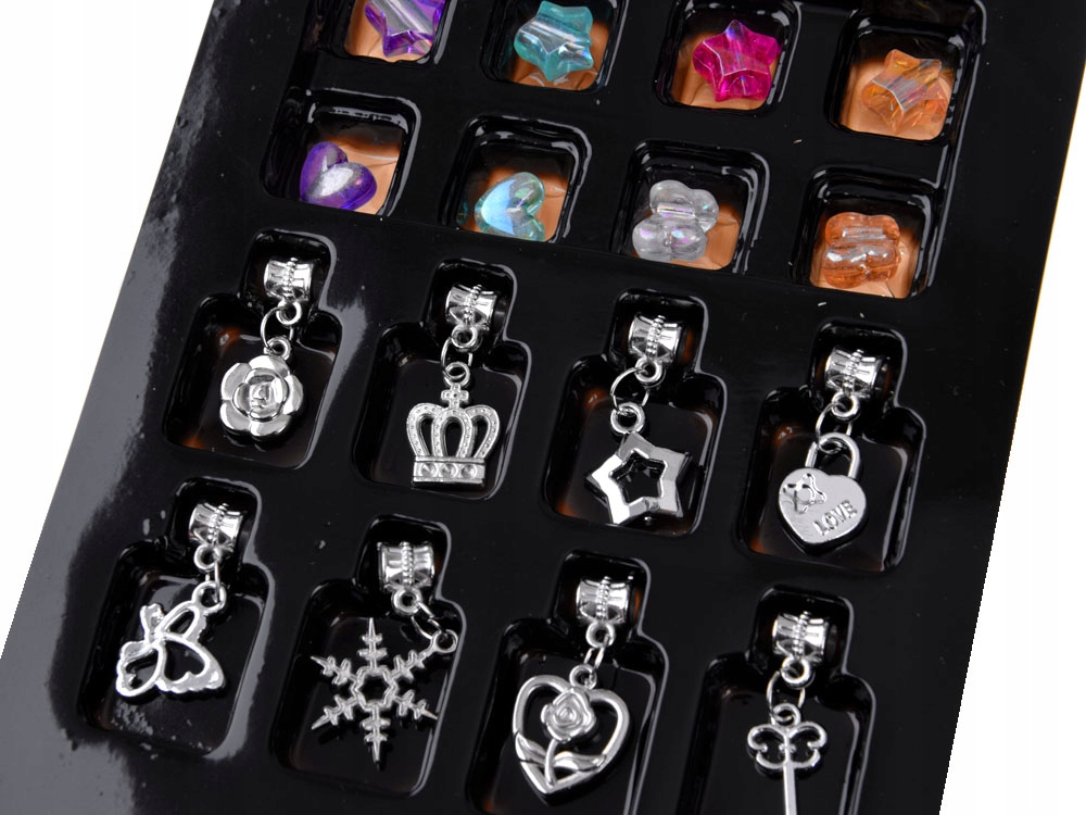- Набір повністю виготовлений зі срібла з різнокольоровими намистинами та підвісками. Найціннішим і красивим буде браслет або намисто, які ви створите самі. З бісеру можна зробити чудовий і неповторний подарунок собі, мамі або найкращій подрузі. Магазин «Джокомісіада» пропонує широкий вибір іграшок для ручної роботи.