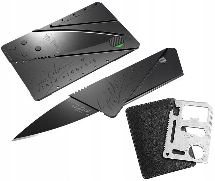Складний ніж для виживання кредитної картки, який можна носити в гаманці, тому ви завжди матимете його з собою на випадок надзвичайної ситуації.