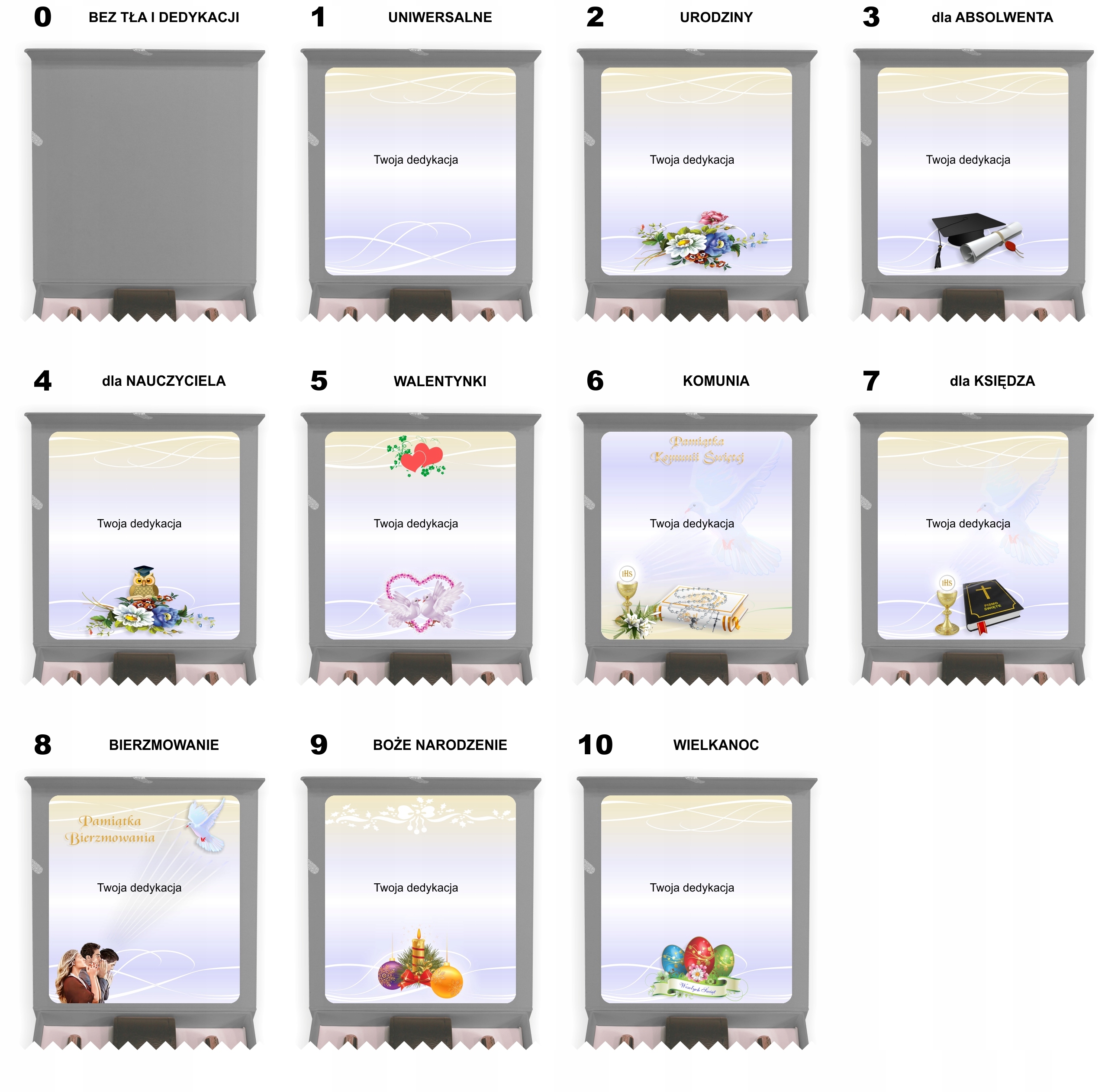 Фон для присвяти, залежно від події, представлений далі в описі .